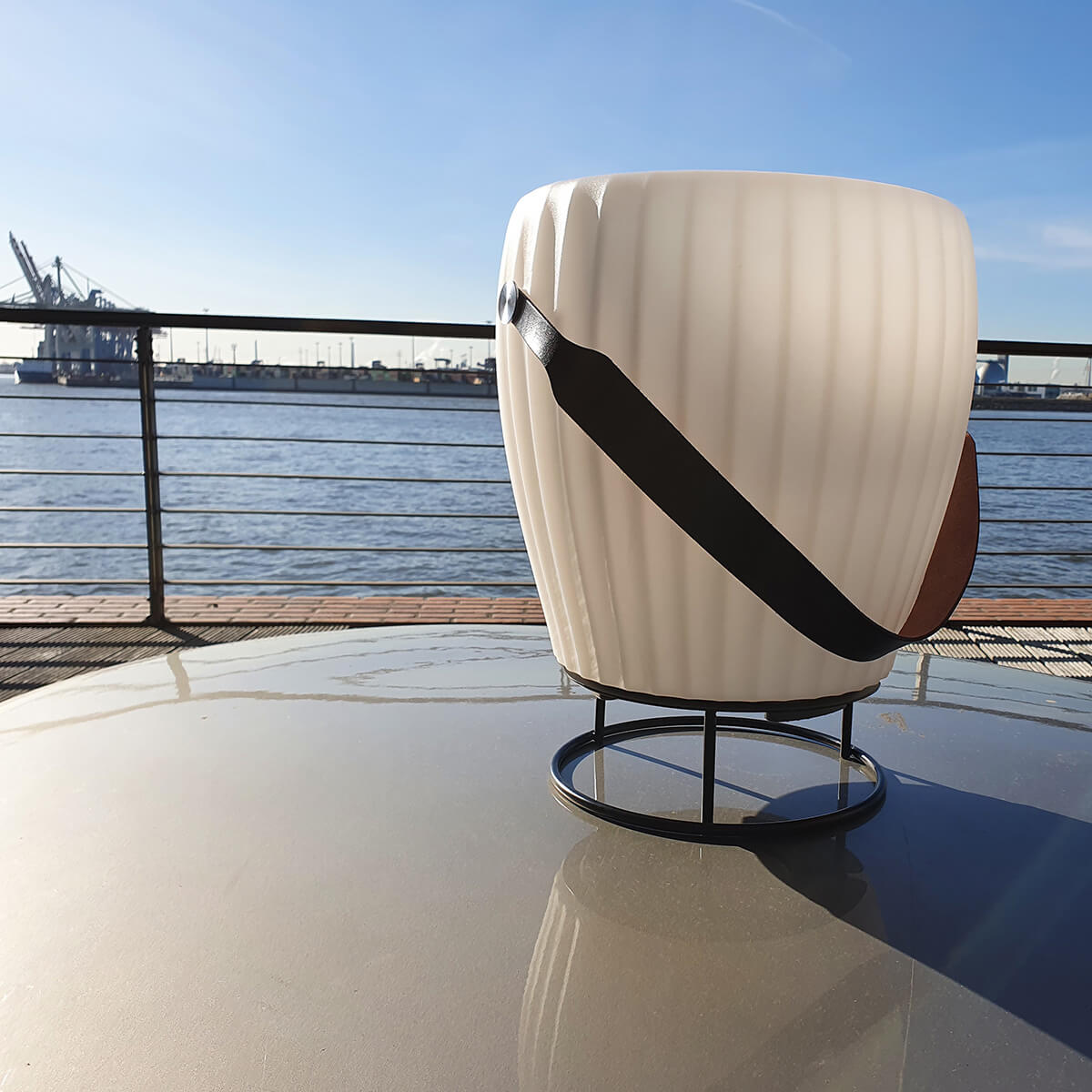 - Sorgt durch die erhöhte Platzierung des Lautsprechers für eine noch bessere, satte Klangqualität und unterstreicht das Design