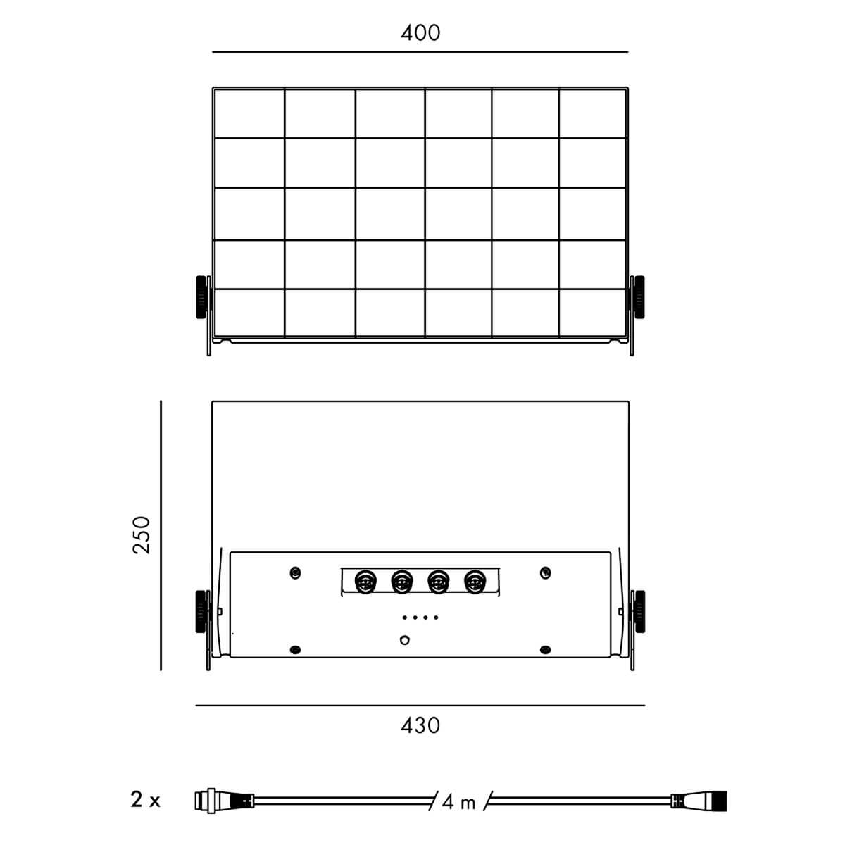 Das solarbetriebene Kraftpaket ist kompakt, modern und fügt sich harmonisch in jede Gartengestaltung ein. Das pulverbeschichtete Gehäuse ist UV-beständig und hält auch widrigsten Wetterbedingungen stand. Aus gehärtetem Glas besteht das leistungsfähige Monokristallin-Solarpanel. Flexibilität bei der Platzierung der Lampen versprechen die beiden mitgelieferten 4 m langen Kabel; weitere Kabel stehen als Zubehör zur Verfügung.