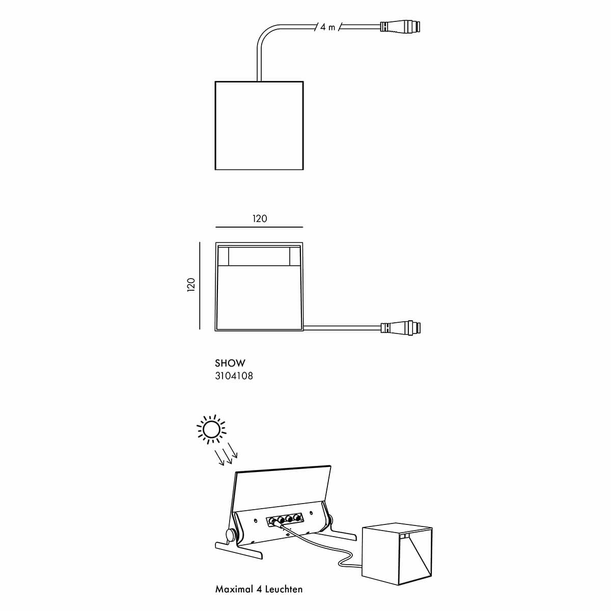 Über ein 2 Meter langes Kabel mit IP68-Verbindung wird die Lampe flexibel mit der Solar Power Bank verbunden. In Kombination mit den Kabeln der Station lassen sich Leuchten im Umkreis von bis zu 8 Metern platzieren – perfekt für Grundstücksbereiche ohne direkte Sonneneinstrahlung oder schwer zugängliche Ecken im Garten.