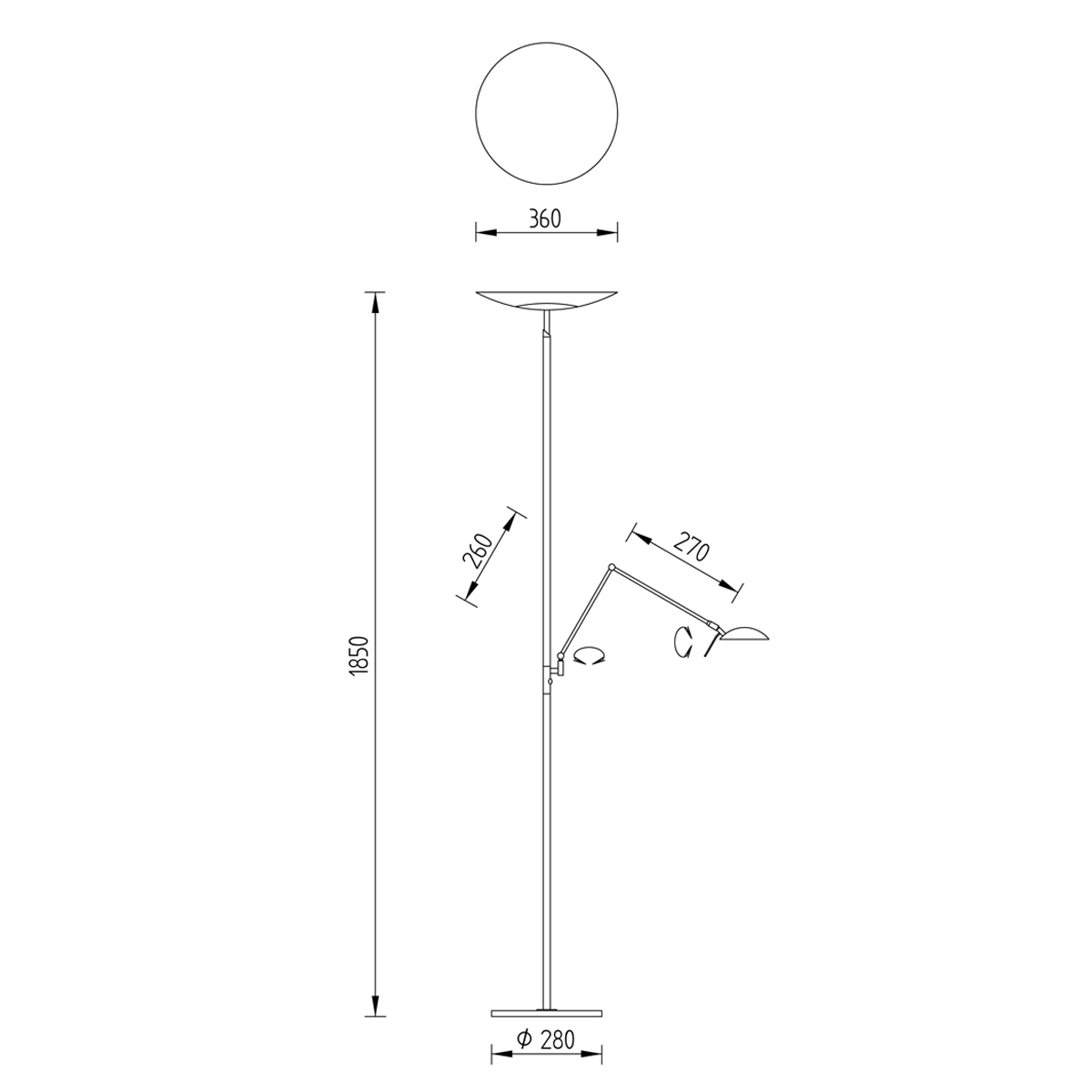 - Dimmung von Uplight (Fluter) und Leselicht separat via Tastdimmer im Schaft bzw. Reflektor möglich