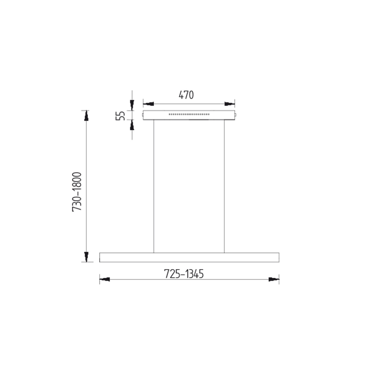 - Die Einstellung der Leuchtenlänge ist durch Verschieben der äußeren Schienen möglich (Ausdehnung von min. 72,5 cm bis max. 134,5 cm)
