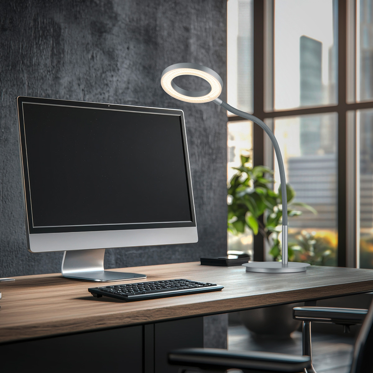 - Zur flexiblen Beleuchtung auf Schreib- und Beistelltisch
