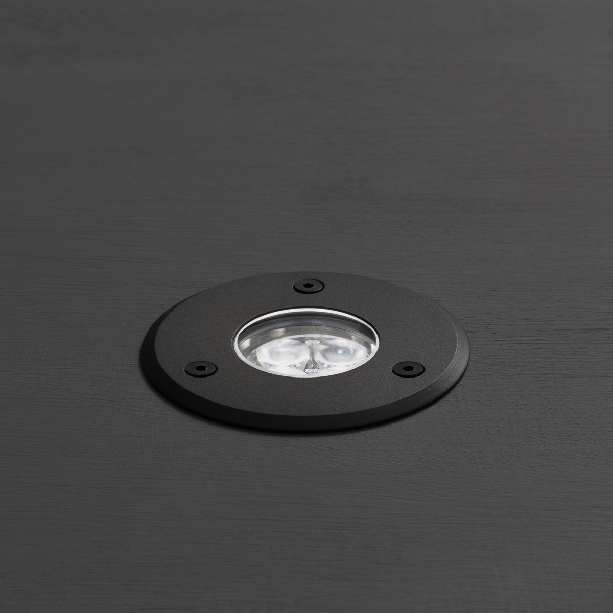 - Moderner, flacher Bodeneinbaustrahler zur akzentuierten Beleuchtung von Hausfassaden, Terrassen oder Baumkronen