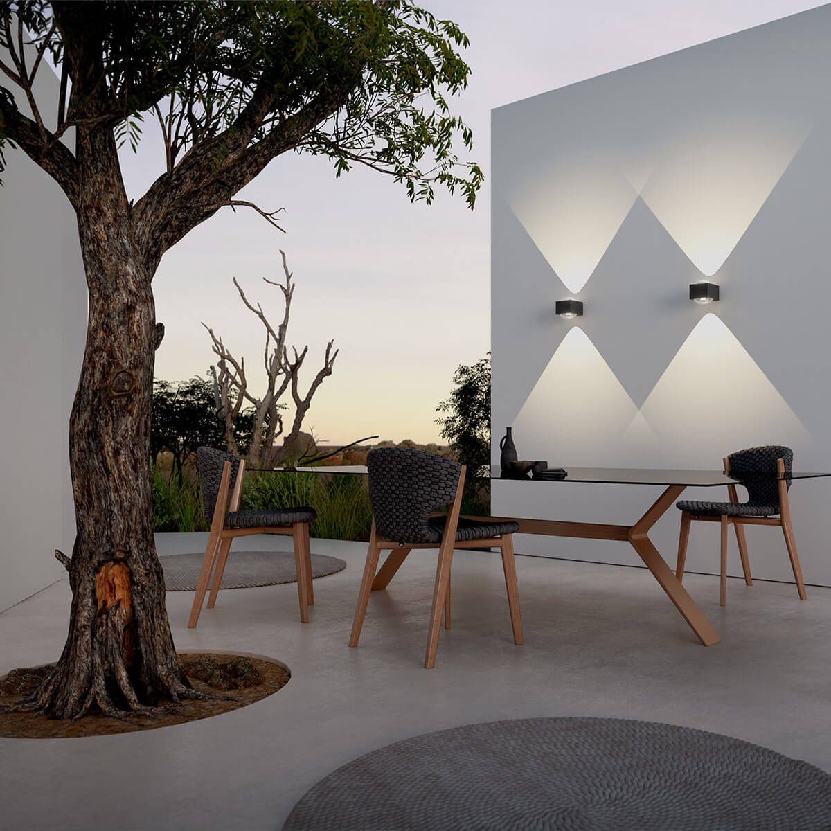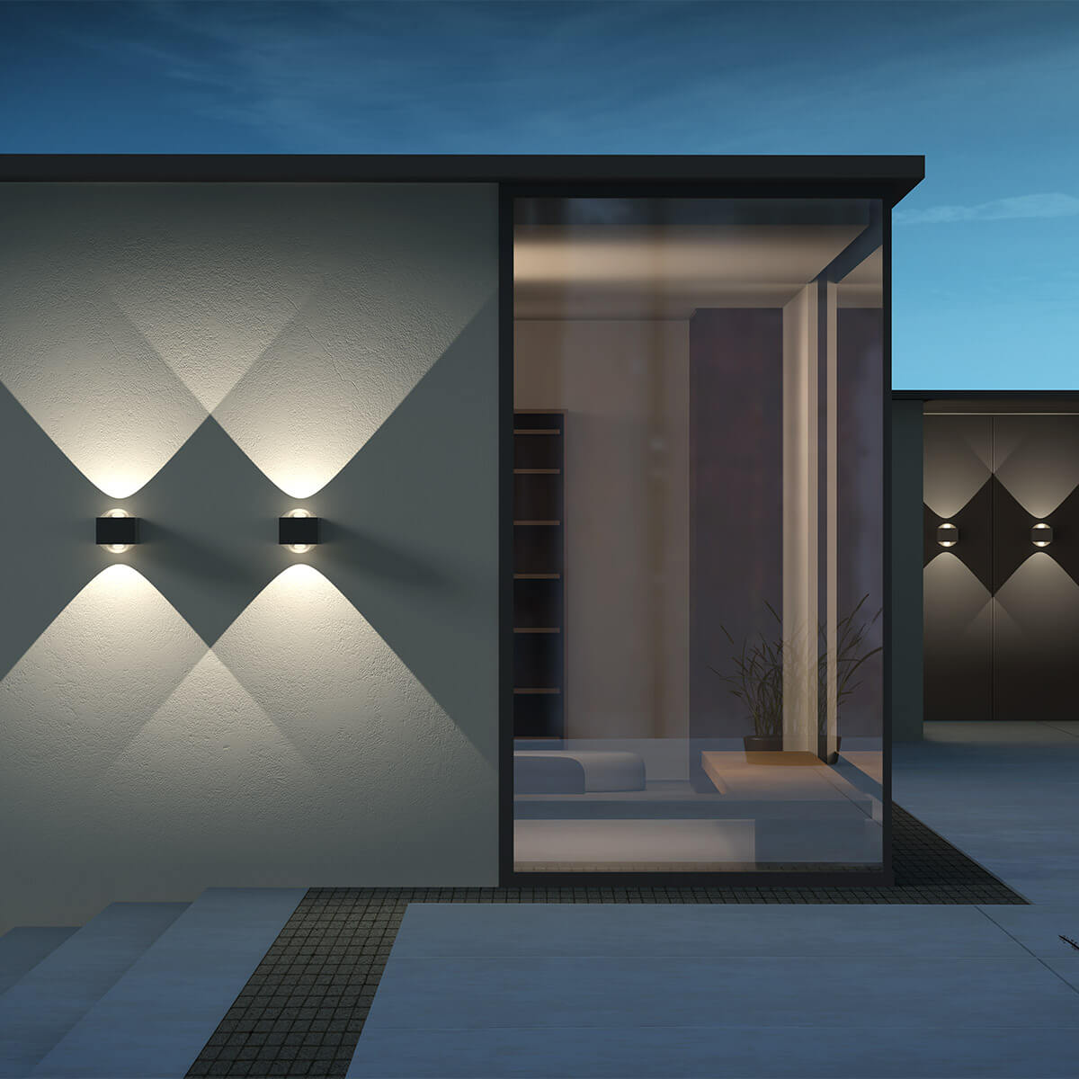 - Eckige Außenwandleuchte aus Aluminiumdruckguss mit zwei Glaslinsen