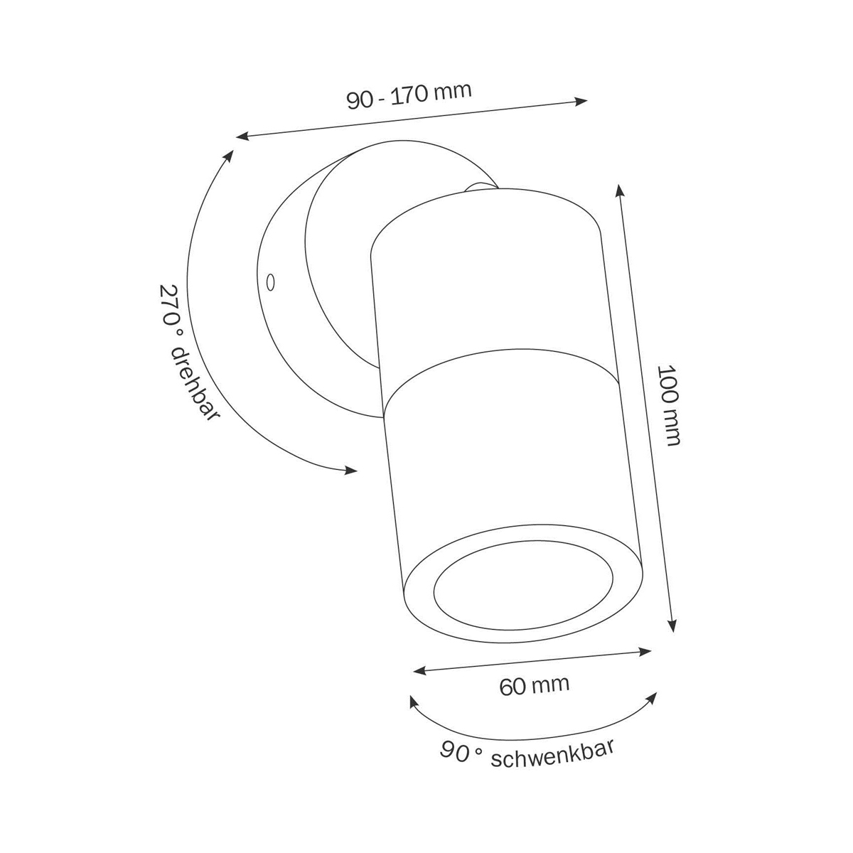 - Leuchtenkopf um 270° drehbar und um 90° schwenkbar
