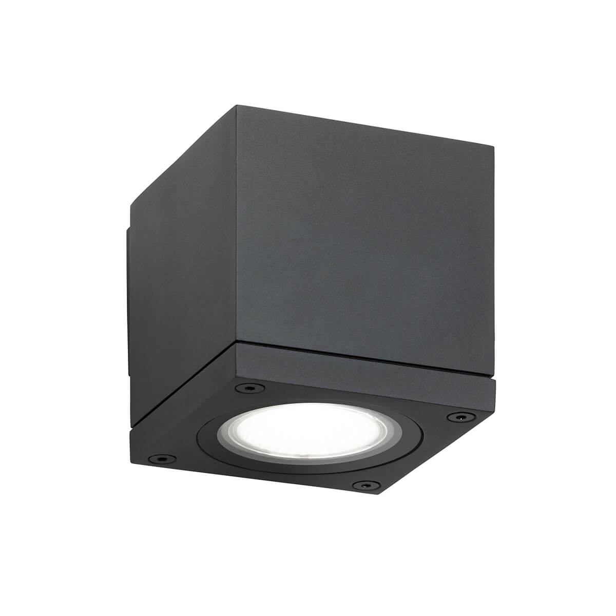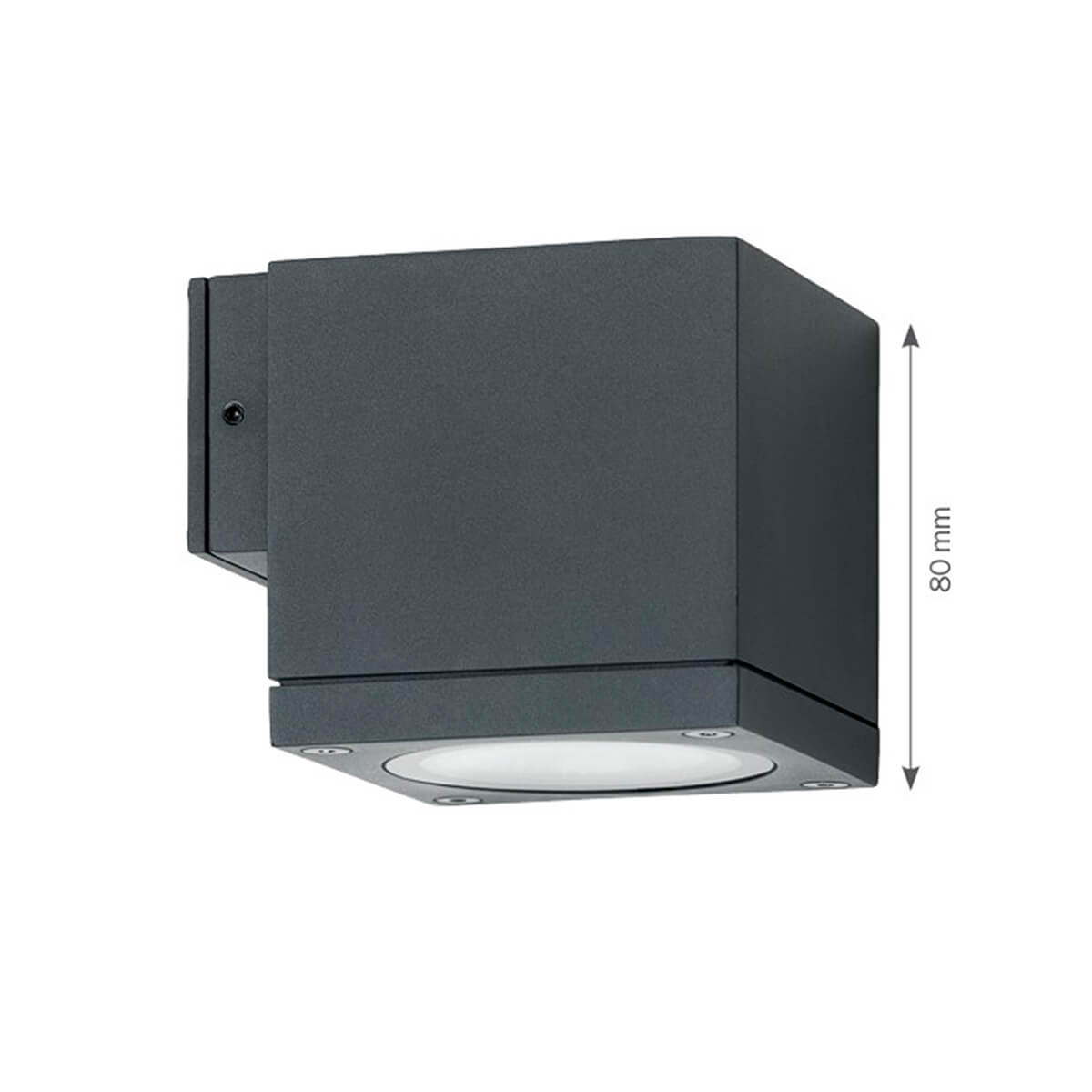 - Eckige, kleine Außenwandleuchte aus pulverbeschichtetem Aluminiumdruckguss mit einem Diffusor aus Floatglas