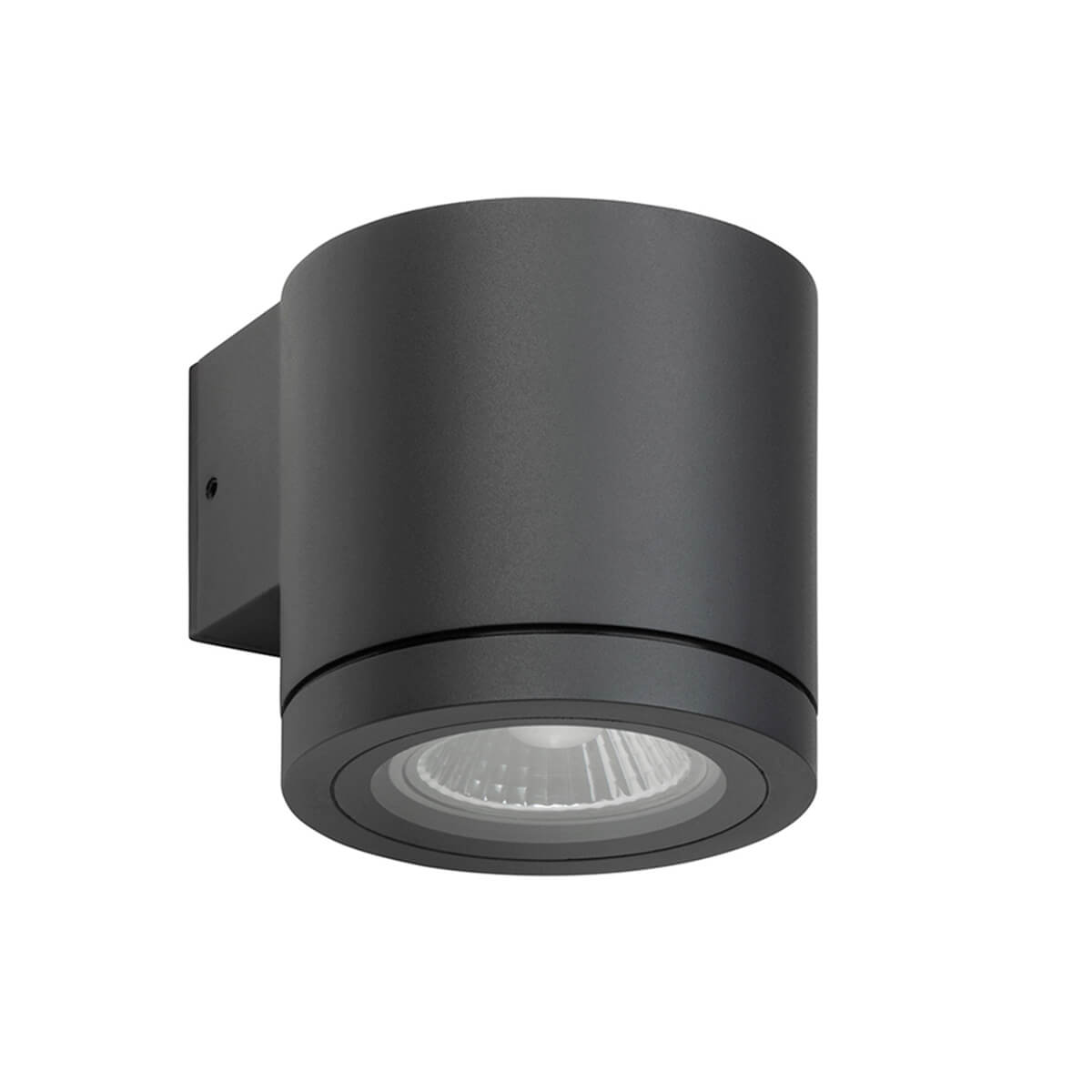 - Runde, kleine Außenwandleuchte aus pulverbeschichtetem Aluminiumdruckguss mit einem Diffusor aus Floatglas