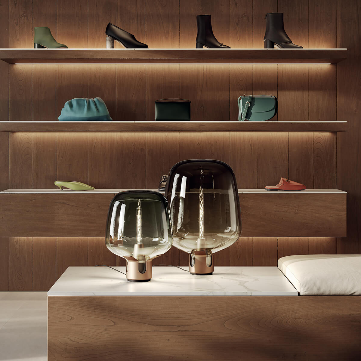 • Dekorative Tisch- und Bodenleuchte für den Wohn- und Objektbereich