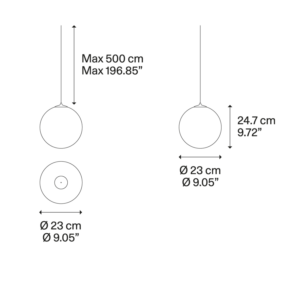 Lodes Random Solo 23 LED Pendelleuchte, Maßzeichnung