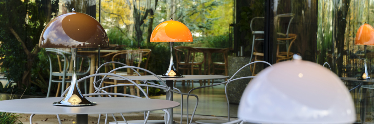 Die klassischen Modelle wie die Stehlampe und die Panthella Tischleuchte 400 sind für den Innenbereich konzipiert. Die Panthella Portable Akkuleuchten sind jedoch spritzwassergeschützt (IP44) und können auch im geschützten Außenbereich wie Garten, Terrasse und Balkon genutzt werden.
