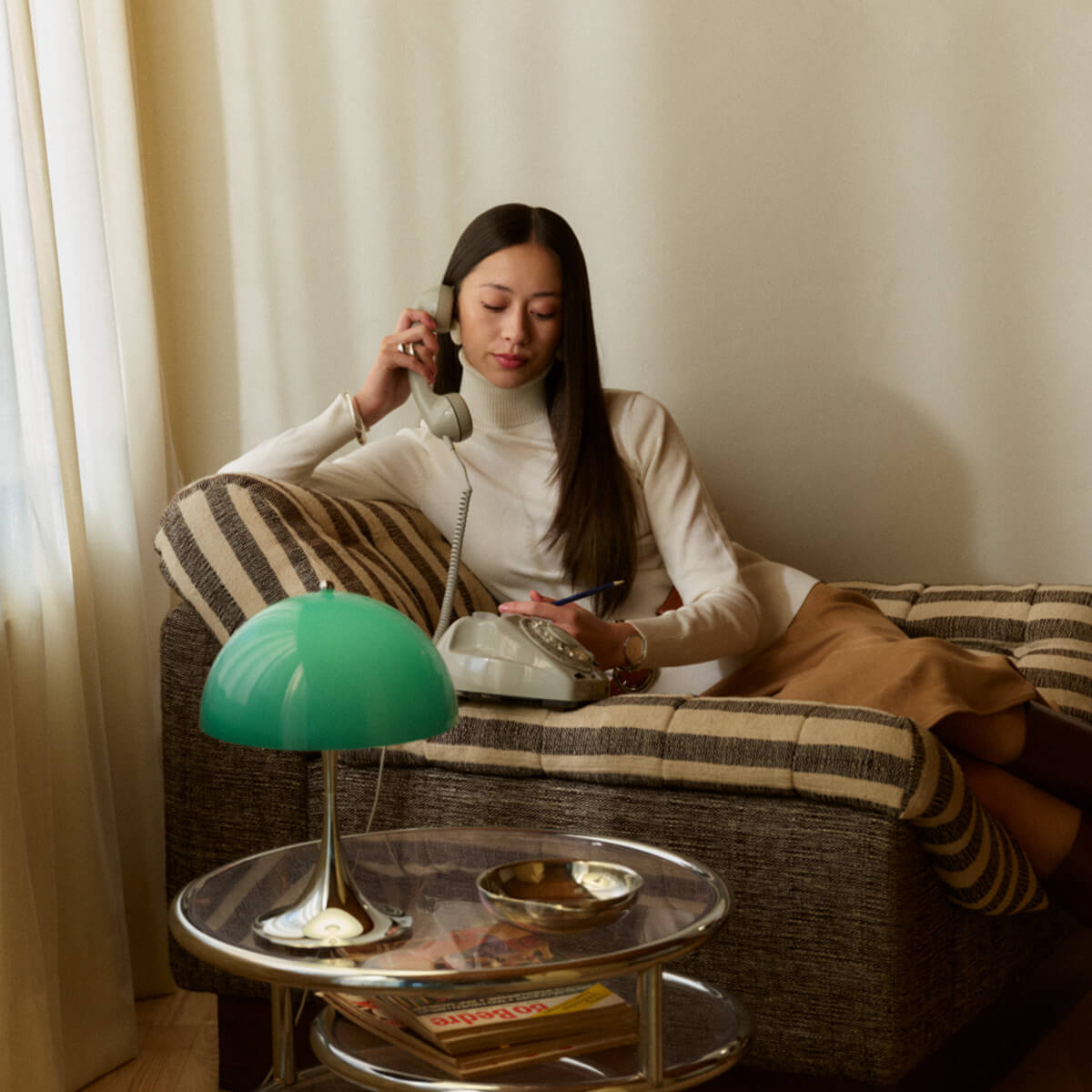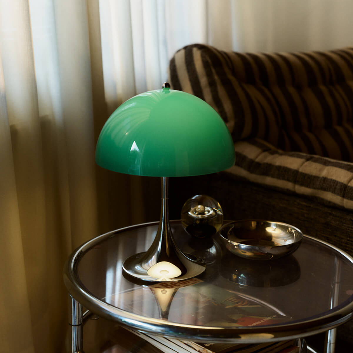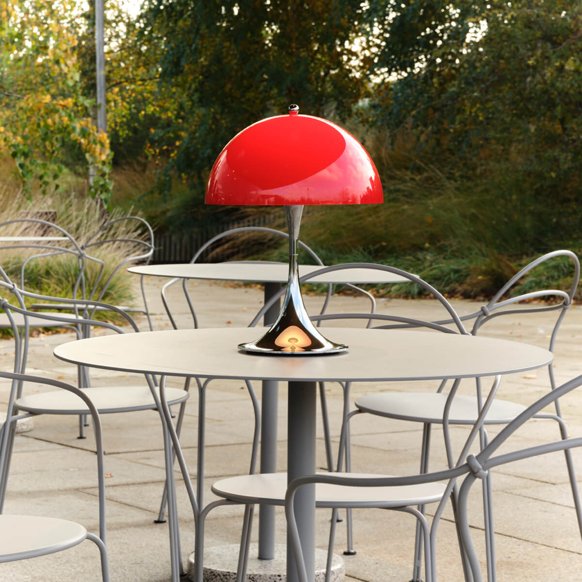 Mit der Panthella Portable Leuchte The Originals knüpft Louis Poulsen an die farbenfrohe Designgeschichte der 1970er-Jahre an und würdigt das außergewöhnliche Schaffen von Verner Panton. Die Sonderedition greift jene markanten Originalfarben auf, mit denen Panton die Panthella 1971 erstmals präsentierte – kombiniert mit dem charakteristischen Chromfuß, der den expressiven Charakter der Lampe unterstreicht. Leuchtendes Orange und Rot, tiefes Grün und Braun sowie ein zeitloses Blaugrau lassen den Geist der Siebziger neu aufleben und setzen zugleich moderne Akzente in jedem Interieur.