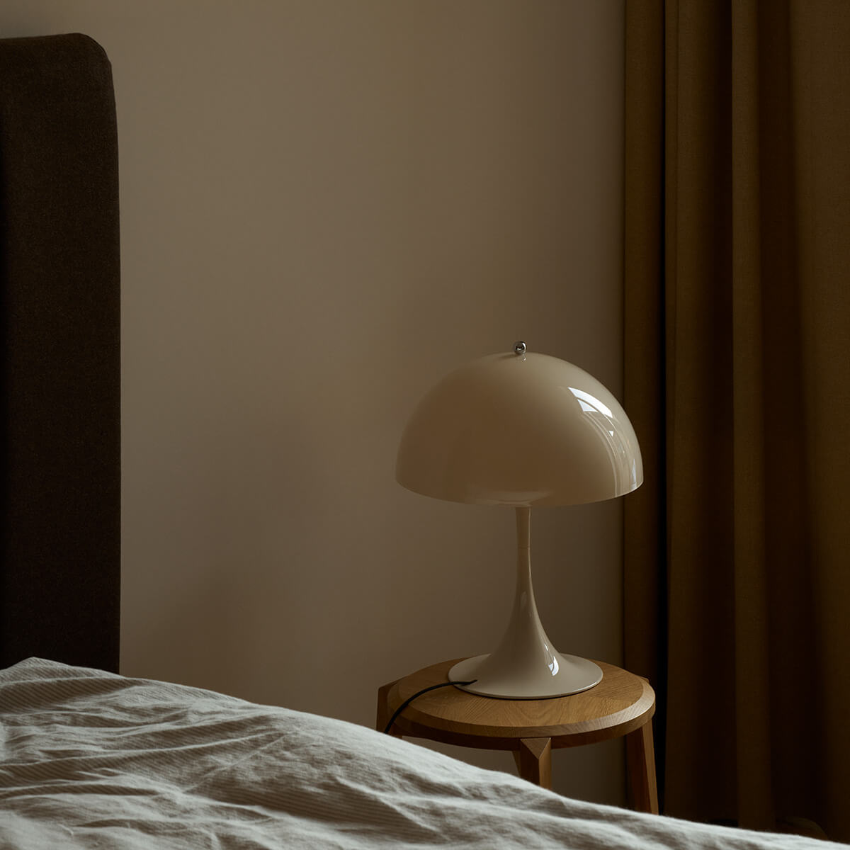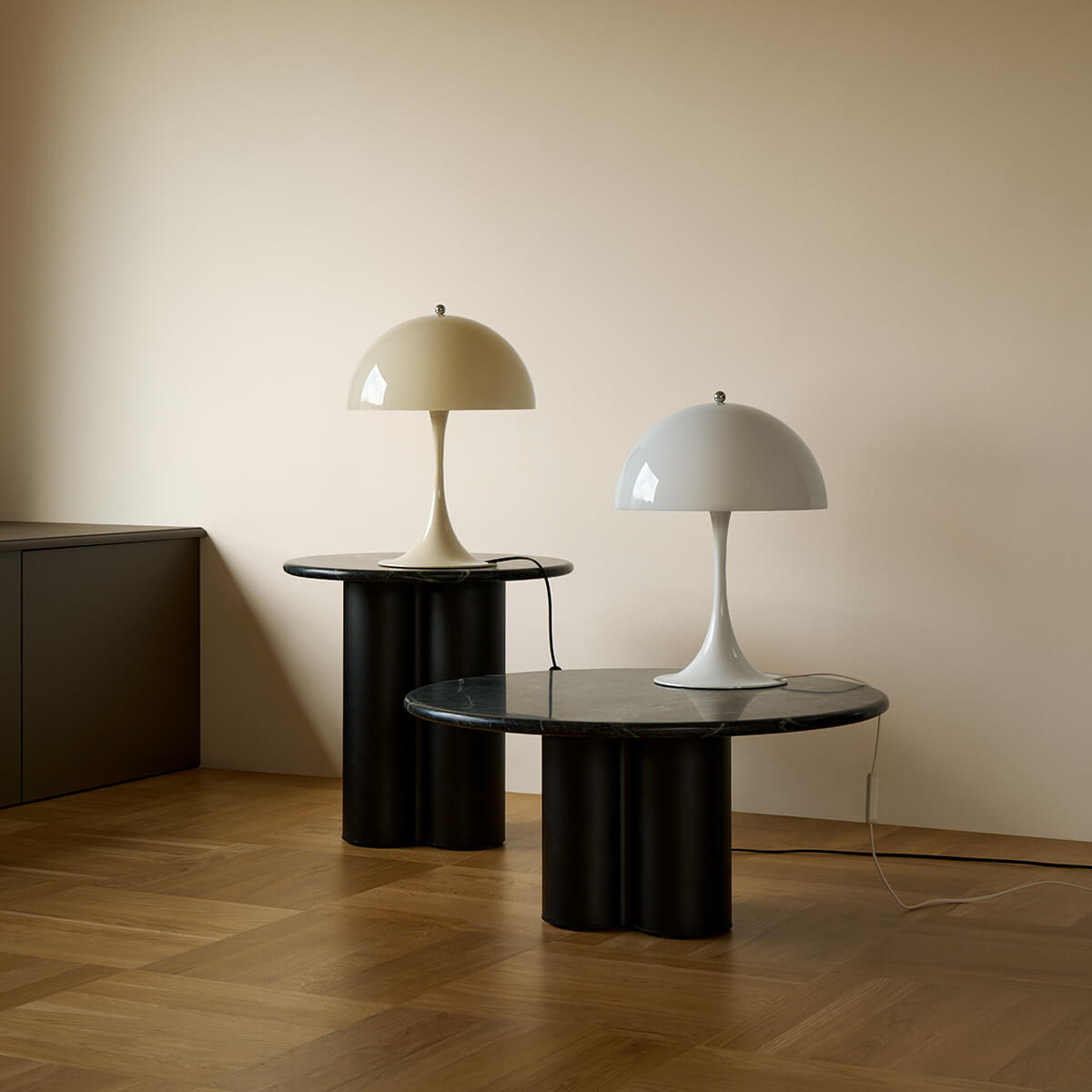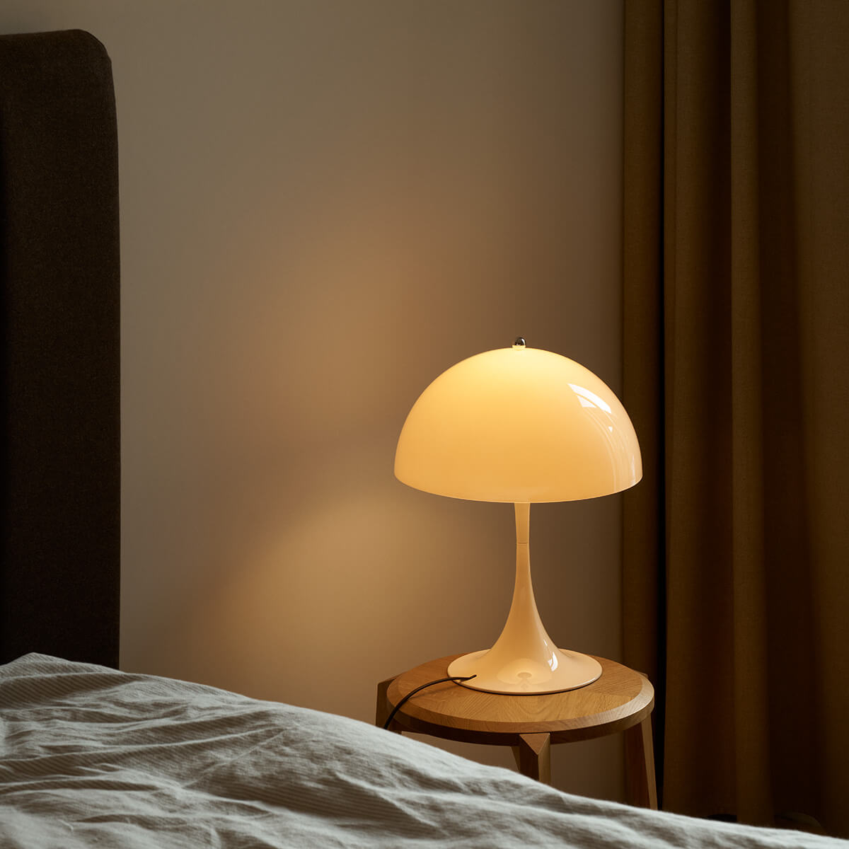 Erhältlich in Opal Weiß und Opal Beige, strahlt die Panthella 320 eine zurückhaltende Eleganz aus, die sich mühelos in moderne wie auch retro-inspirierte Interieurs einfügt. Das glänzende Finish unterstreicht den hochwertigen Charakter, während ein praktischer Schnurschalter für eine einfache Bedienung sorgt.