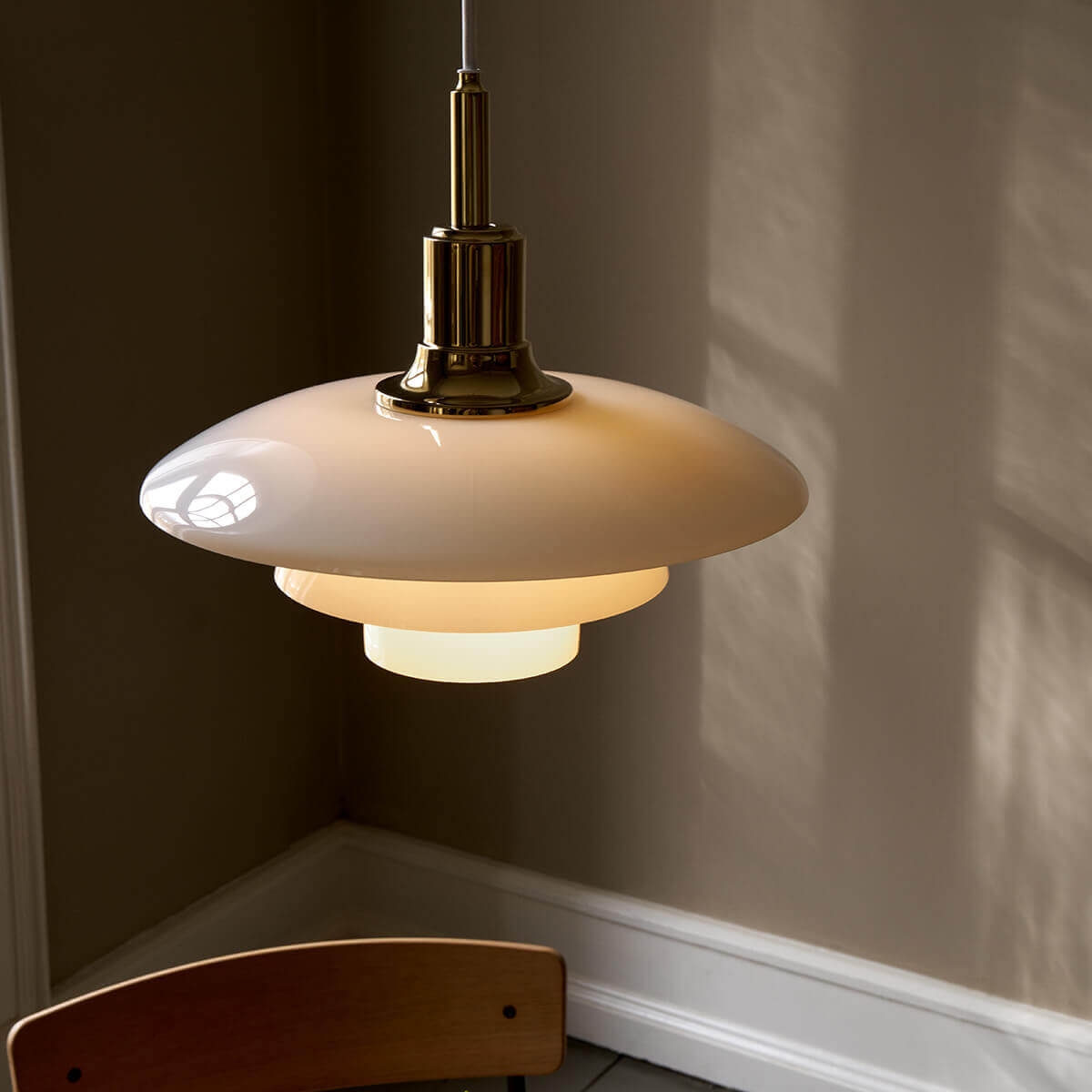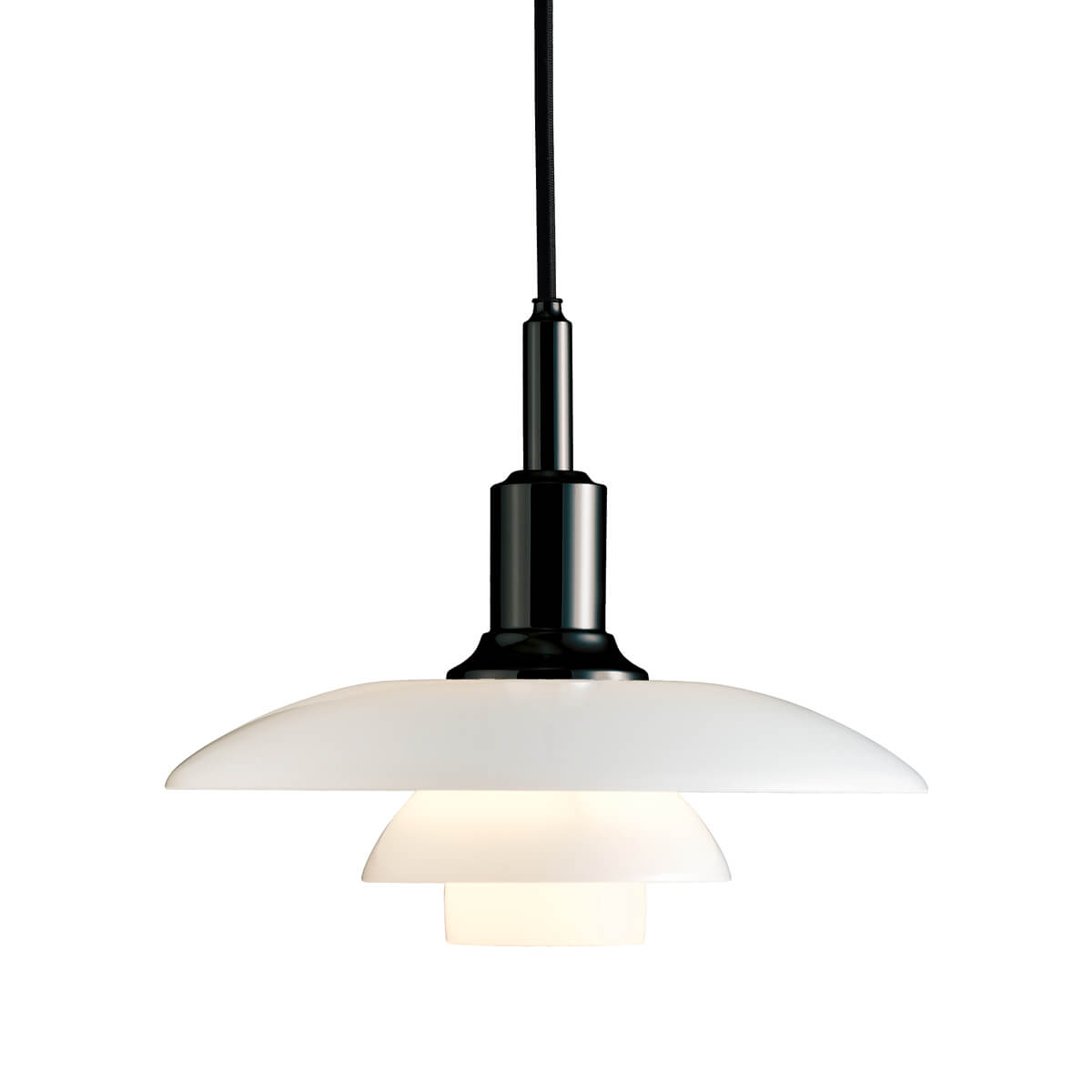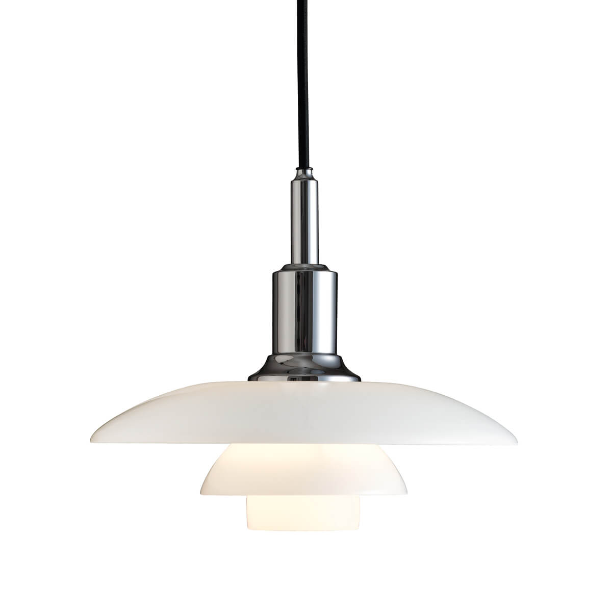 Die PH 3/2 von Louis Poulsen ist eine echte Designikone, die seit fast einem Jahrhundert stilvolle Räume erhellt. Sie basiert auf dem von Poul Henningsen 1925 entwickelten Dreischirmsystem, das für eine direkte, blendfreie Lichtausstrahlung sorgt und gleichzeitig ein sanftes, diffuses Ambiente schafft. Die Schirme sind aus mundgeblasenem, dreischichtigem Opalglas gefertigt – außen glänzend, innen matt sandgestrahlt – und erzeugen so eine gleichmäßige Lichtwirkung ohne harte Schatten.