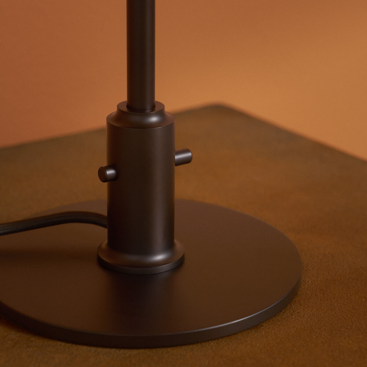 - Braunes Textilkabel und Messingschalter am Fuß