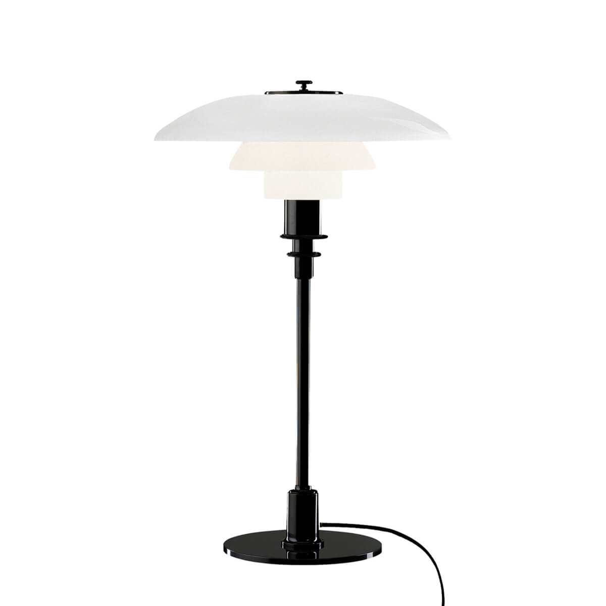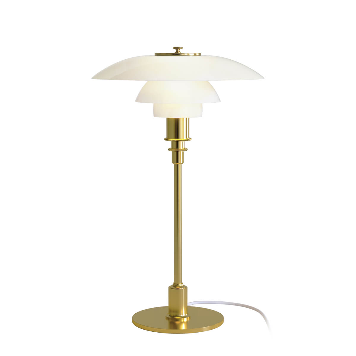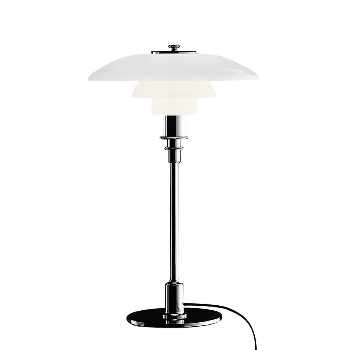 Poul Henningsen, ein Pionier der Lichtforschung, entwarf den dreiteiligen Leuchtenschirm bereits in den Jahren 1925/26. Die ersten Modelle, die in Zusammenarbeit mit Louis Poulsen entstanden, wurden auf einer Pariser Ausstellung präsentiert. Henningsens Ziel war es, Lampen zu entwickeln, die blendfreies Licht ausstrahlen, weiche Schatten werfen und das Licht gezielt lenken. Die PH 3/2 Tischleuchte ist Teil einer umfassenden Serie von Modellen mit dreiteiligem Schirm, die alle auf Henningsens wissenschaftlichen Studien zum Licht basieren. Dank der Verwendung von Glas erzielte er eine gleichmäßige Lichtstreuung und eine diffuse Reflexion, sodass Blendeffekte und Schatten nach Bedarf gesteuert werden können.