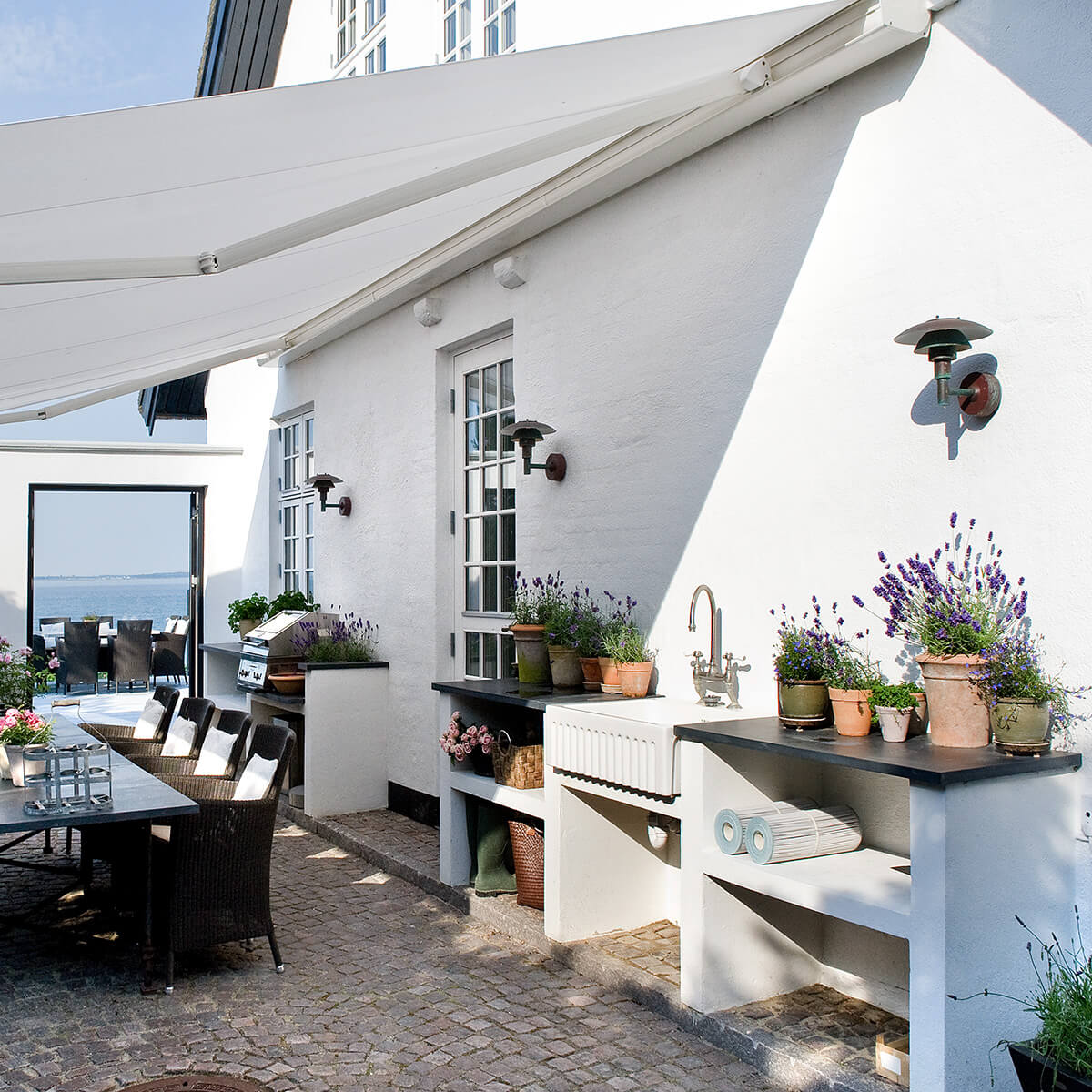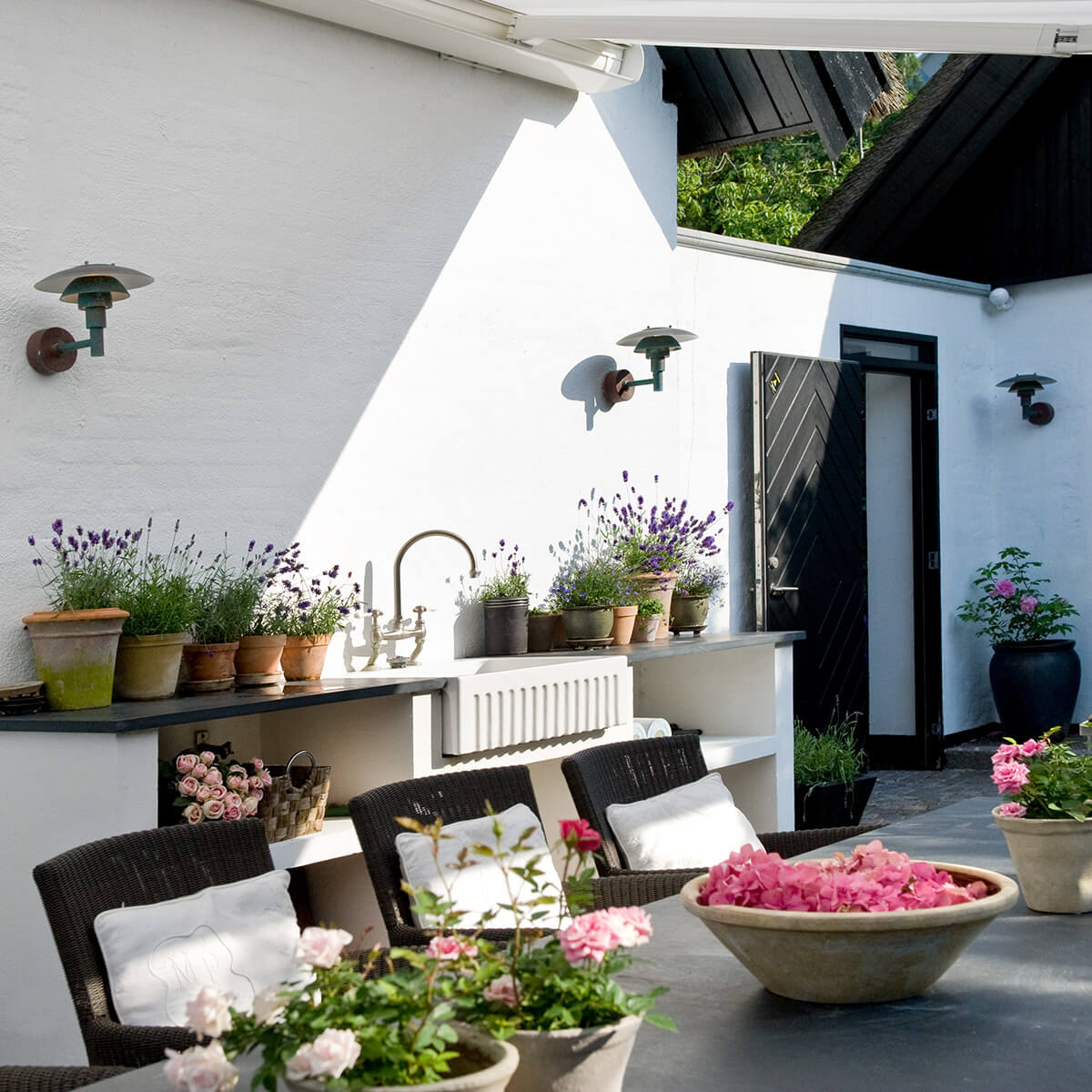 Aus Edelstahl und Aluminiumguss hergestellt und nach Schutzart IP44 zertifiziert, ist die PH 3-2½ Wandleuchte von Louis Poulsen problemlos im Outdoorbereich einsetzbar. Die Lampe eignet sich hervorragend zur Akzentbeleuchtung an Fassaden nahe Hauseingängen, Terrassen und Balkonen, im privaten wie öffentlichen Außenraum.