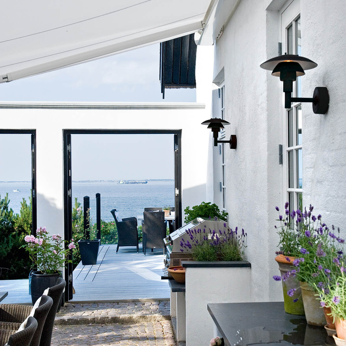 Louis Poulsen PH 3-2½ Wandleuchte: elegante Außenwandleuchte in historischem Design