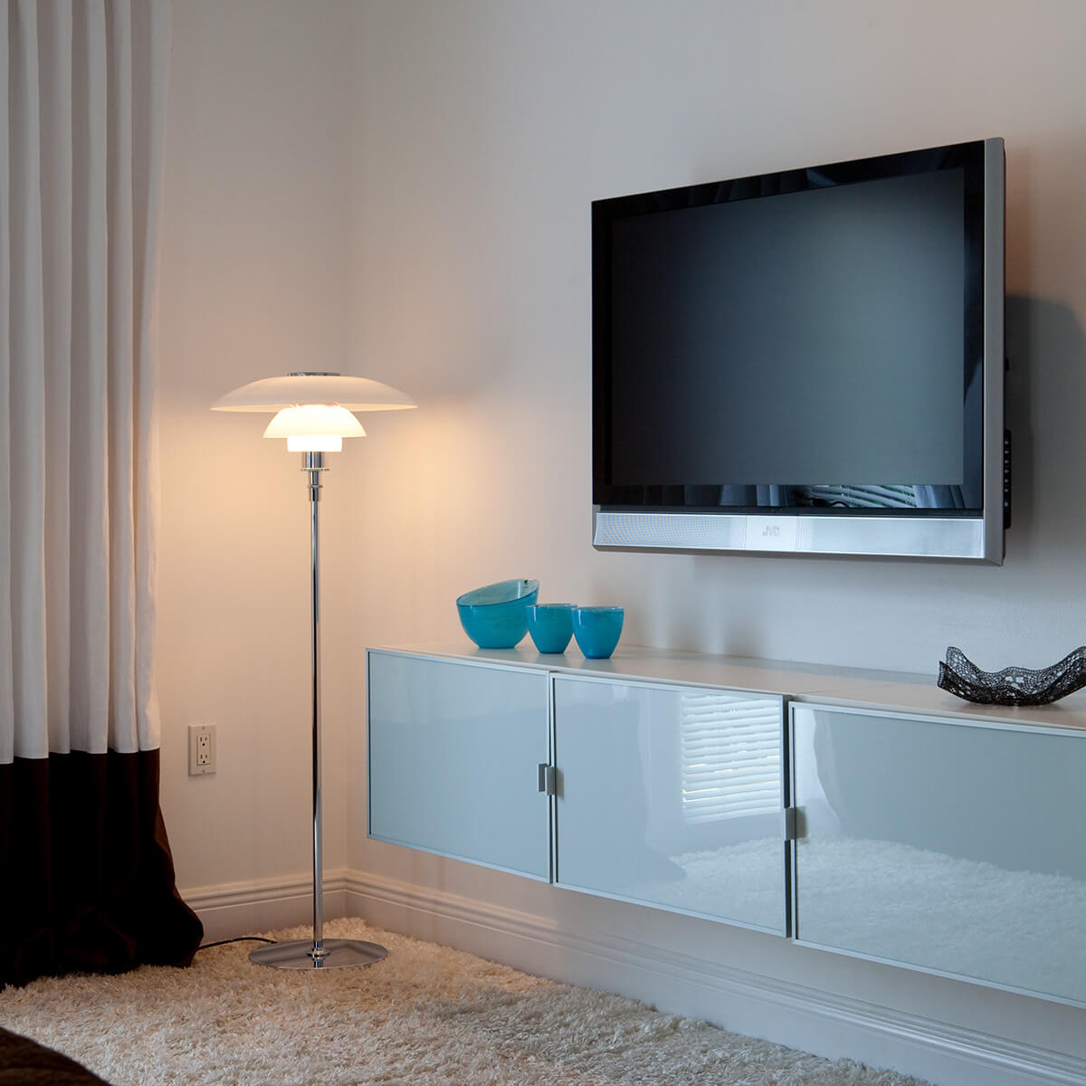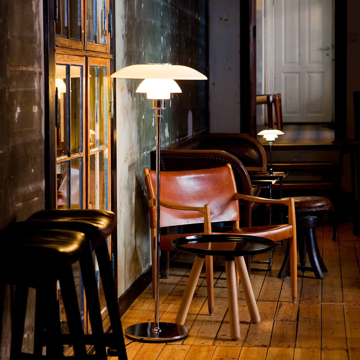 Ob im Wohnzimmer, in einer stilvollen Lounge oder in repräsentativen öffentlichen Räumen wie Hotels und Lobbys – die PH 4½-3½ Stehlampe schafft ein komfortables, wohnliches Raumlicht und eignet sich zugleich hervorragend als elegante Leseleuchte. Sie ist ein Designklassiker für Menschen, die Licht nicht nur funktional, sondern als Teil der Architektur verstehen.