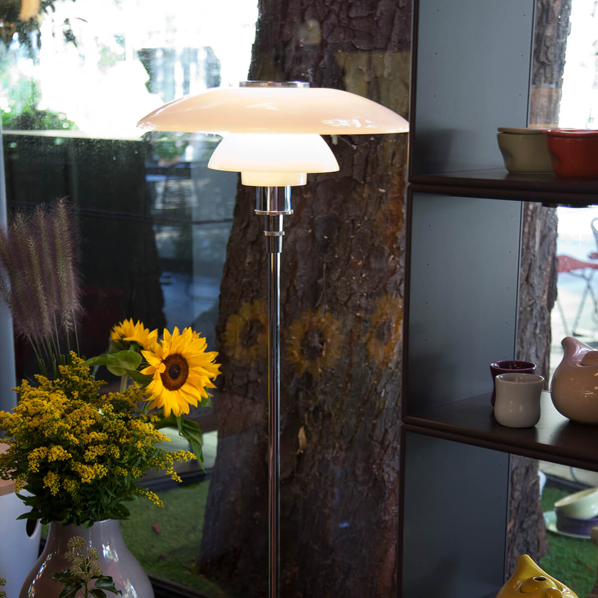Erleben Sie mit der Louis Poulsen PH 4½–3½ Glas Stehleuchte von Poul Henningsen ein Meisterwerk skandinavischer Lichtgestaltung, das Geschichte, Handwerk und zeitlose Ästhetik vereint.