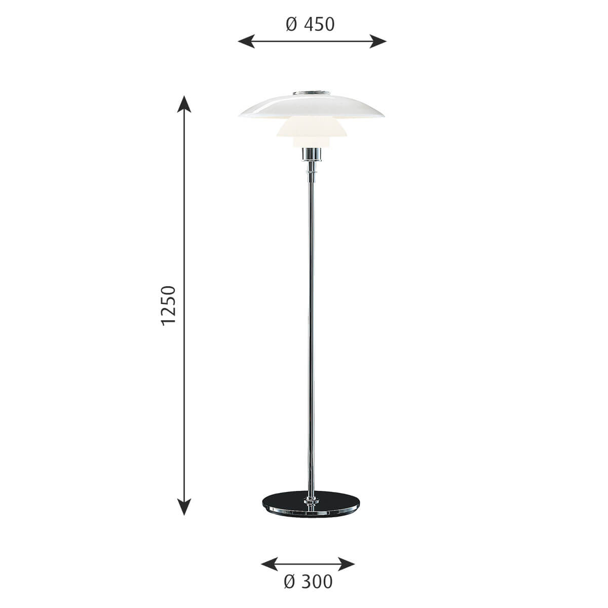 Louis Poulsen PH 4½-3½ Glas Stehleuchte: ikonische Design-Stehlampe mit mundgeblasenem Opalglas