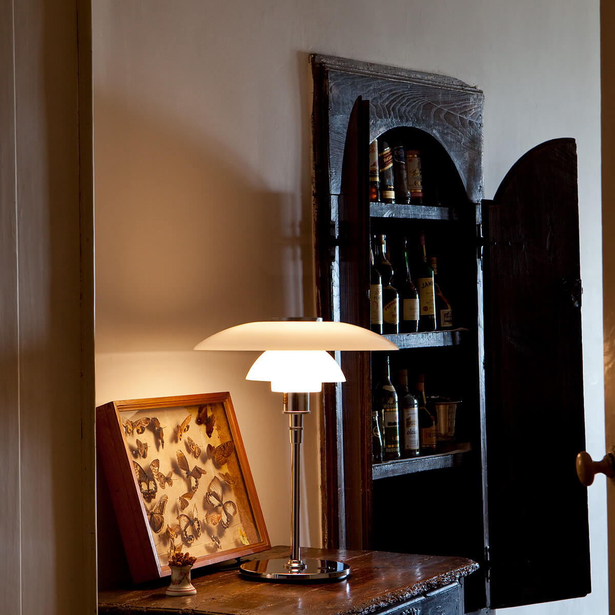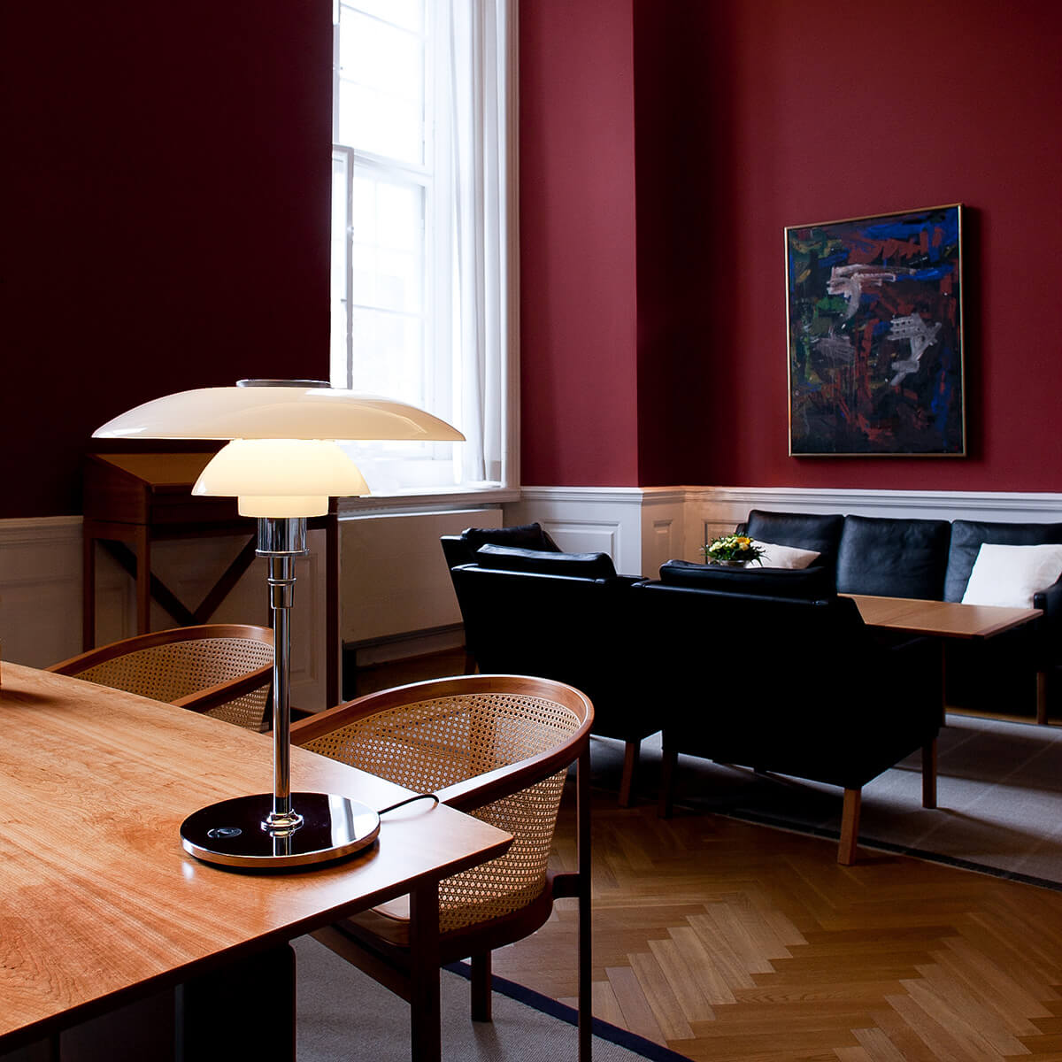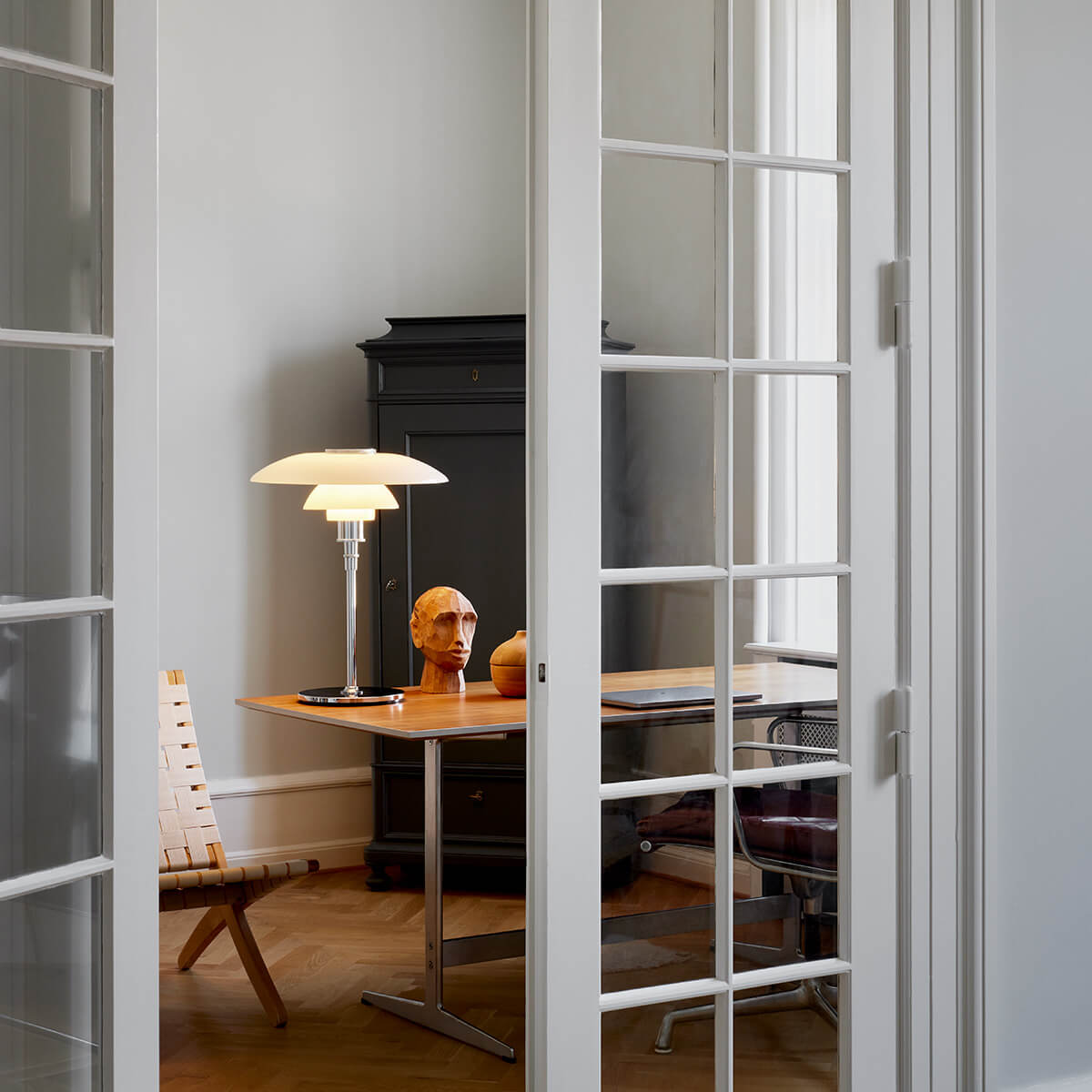 Die PH 4½-3½ Tischleuchte von Louis Poulsen ist eine der elegantesten Ikonen des dänischen Lichtdesigns – geschaffen für stilvolle Wohn- und Arbeitswelten wie Wohnzimmer, Schlafzimmer, Homeoffice, repräsentative Büros sowie Hotels und Lounges. Auf Kommoden, Beistell- oder Schreibtischen setzt sie nicht nur einen formschönen Akzent, sondern sorgt zudem für ein angenehm blendfreies Licht, das Räume mit einer warmen, atmosphärischen Präsenz erfüllt.