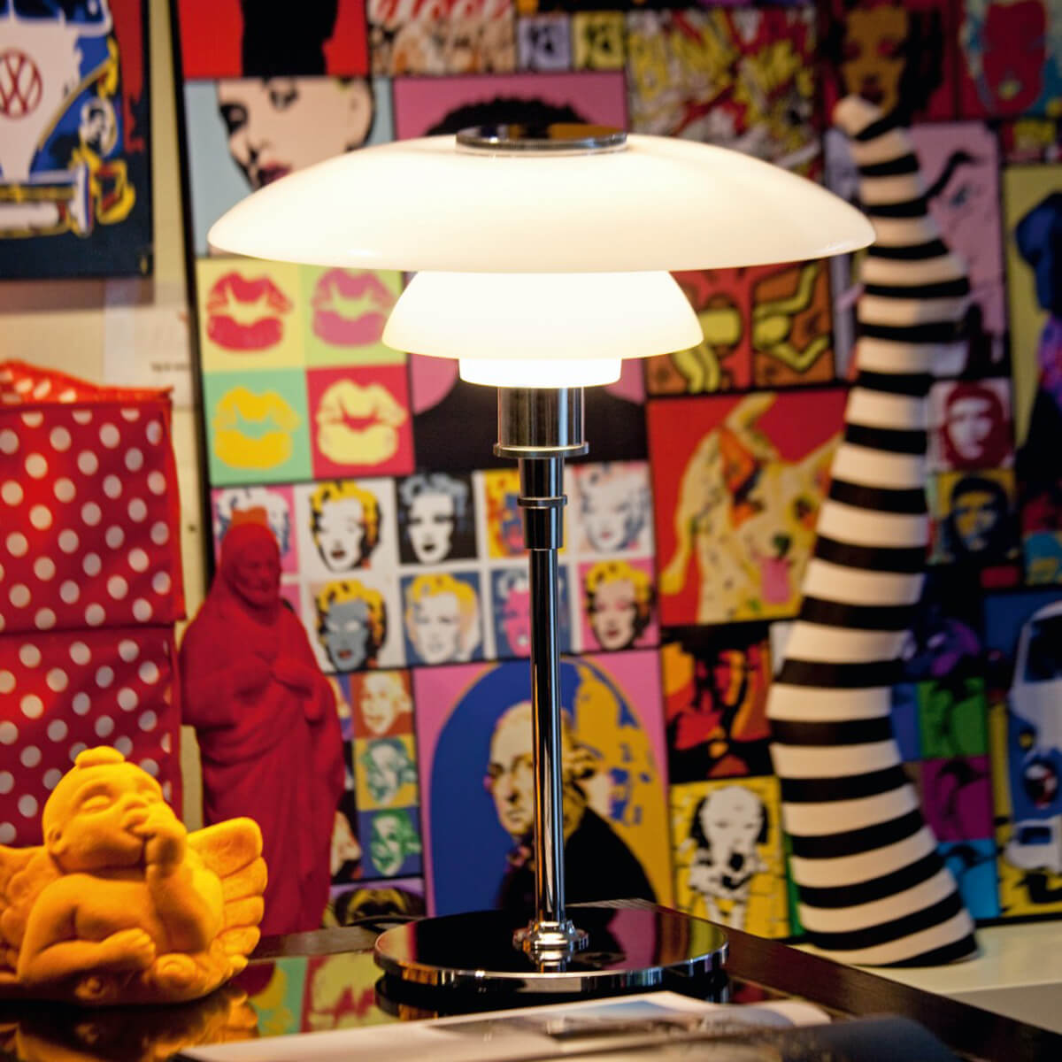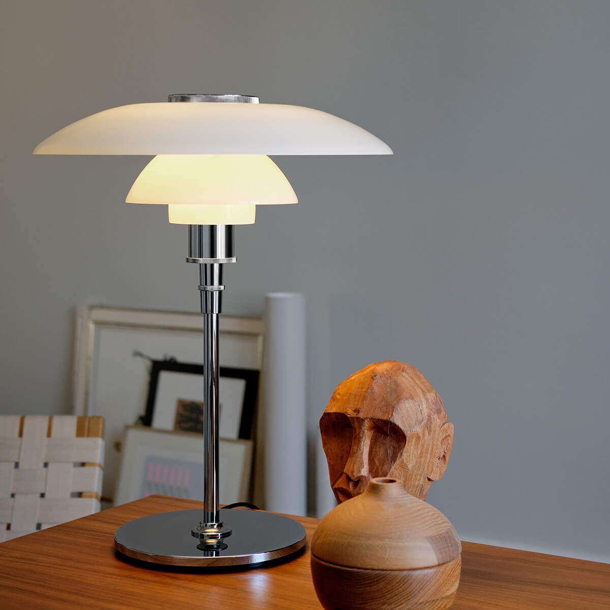 Louis Poulsen PH 4½-3½ Glas Tischleuchte: Opalglas-Designikone für blendfreies Wohn- & Arbeitslicht