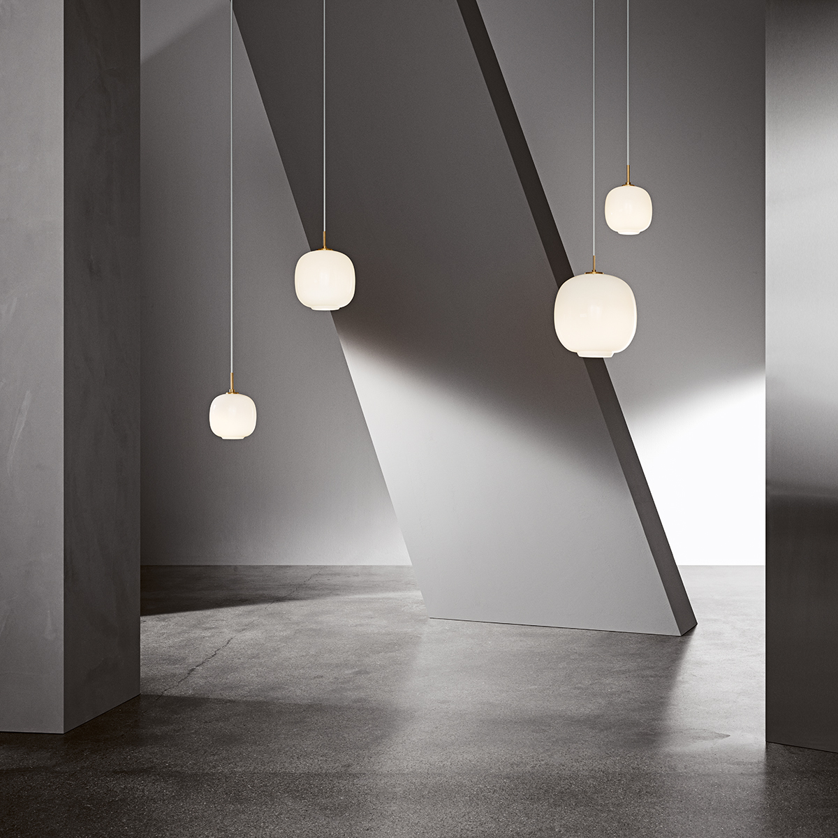 Die Pendellampe zeichnet sich durch ihr harmonisches, weiches Lichtbild aus. Die Öffnung am Boden des Schirms sorgt für ein zoniertes, nach unten gerichtetes Licht, während die Qualität des mundgeblasenen Opalglases eine gleichmäßige Lichtausstrahlung gewährleistet. Egal, ob in hoher oder niedriger Höhe angebracht, über einem Esstisch, einer Theke oder frei im Raum schwebend, die VL 45 Radiohus beleuchtet Ihren Raum auf sanfte Weise.