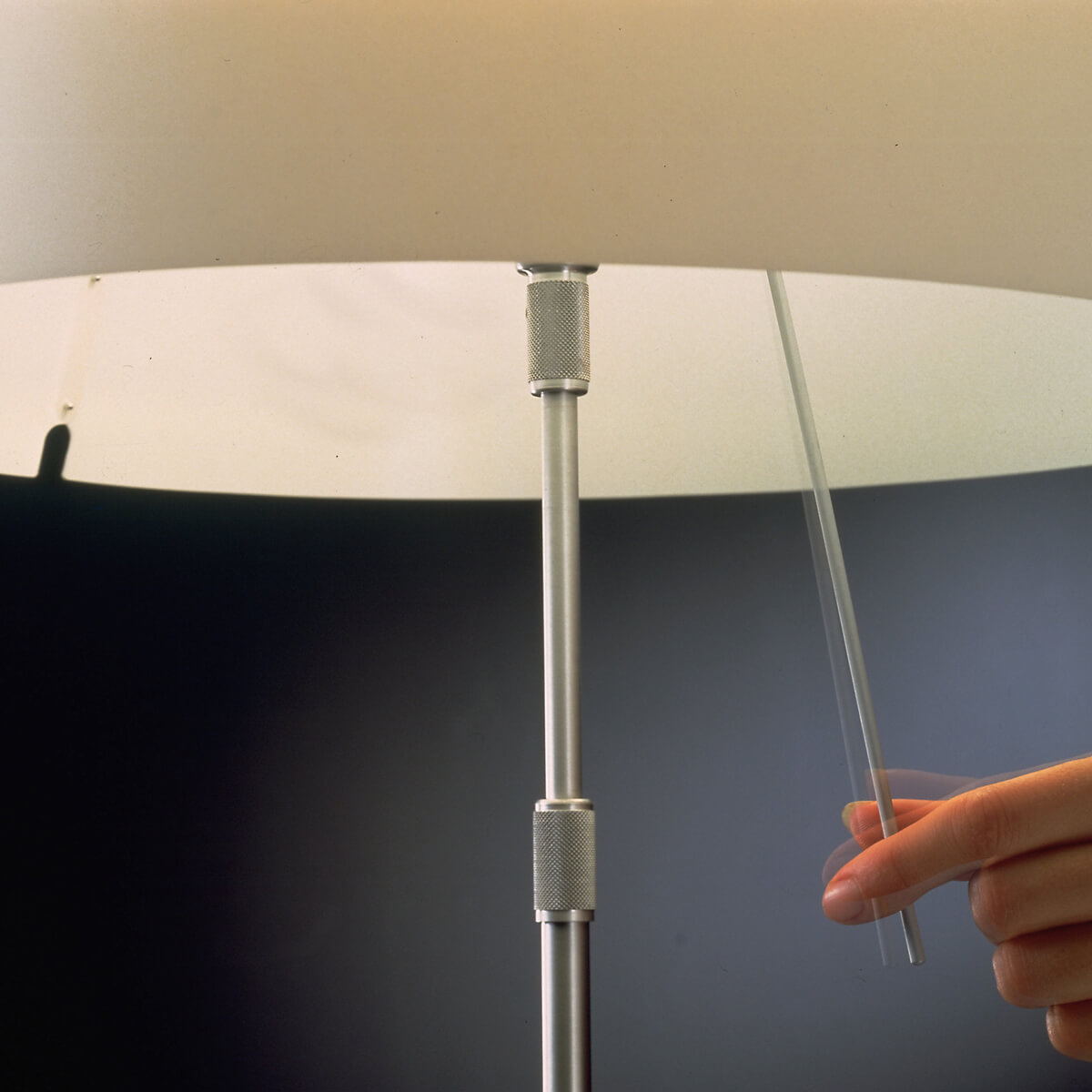 Besondere Funktionalität erhält die Tischleuchte aufgrund ihres verstellbaren Teleskopstiels, durch den sich der Leuchtenschirm in seiner Höhe regulieren lässt. Ein nahe der Lichtquelle befindlicher Touchdimmer ermöglicht es, zwischen vier unterschiedlichen Lichtstufen zu wählen – je nach Bedürfnis und erwünschter Lichtatmosphäre. Hierbei genügt ein sanftes Berühren des zarten Stäbchens, um die Costanza Tavolo Tischleuchte zu bedienen.