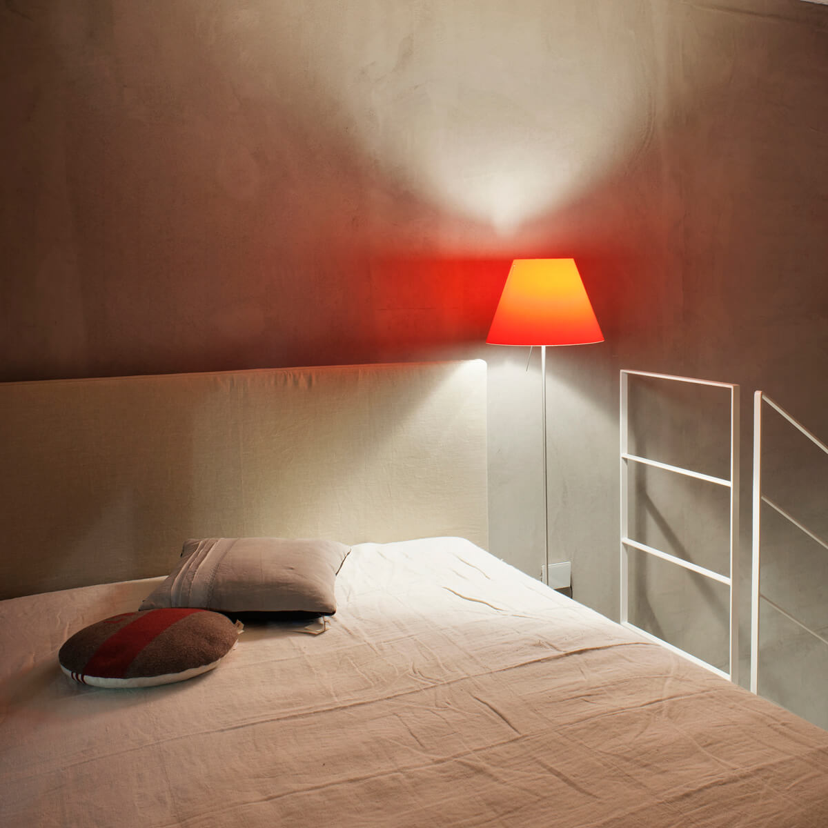 - Zeitlose Stehleuchte mit Schirm aus farbigem Kunststoff