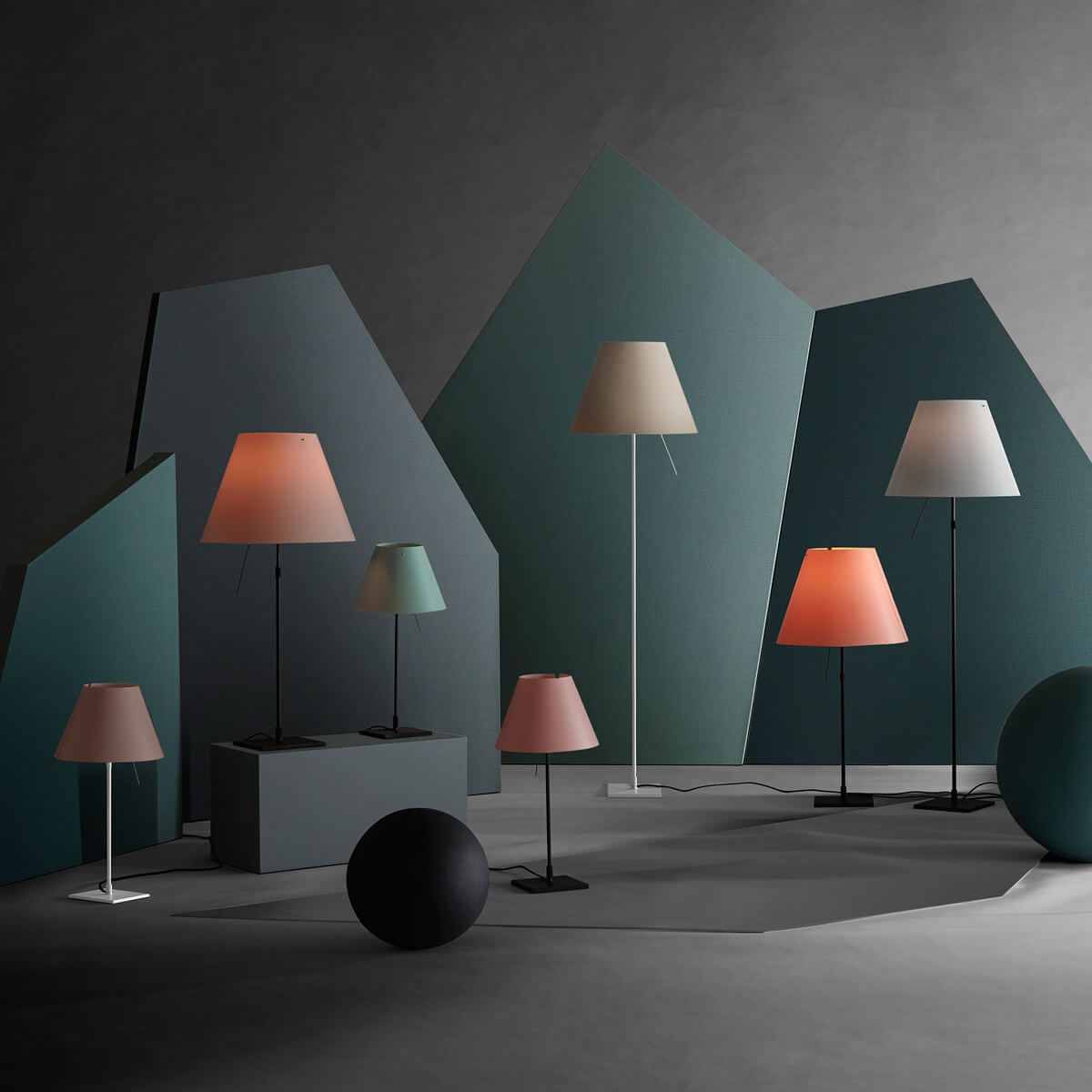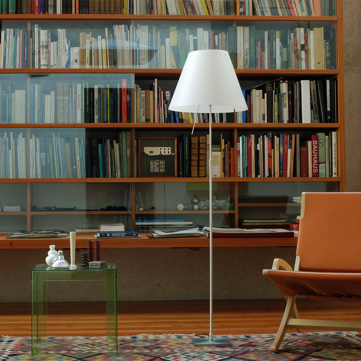 Die Costanza Terra Stehleuchte repräsentiert ein Musterbeispiel an moderner Eleganz. Die Stehleuchte, die bereits 1986 entworfen wurde, vermischt eine klassische Linie mit einem aufs Wesentliche reduzierten Formgefühl. Auf schmückendes Beiwerk wurde verzichtet und stattdessen der Fokus auf das Licht gelegt. Dass die Costanza Terra Stehleuchte dennoch keineswegs langweilig ist, dafür sorgen die farbenfrohen Leuchtenschirme.