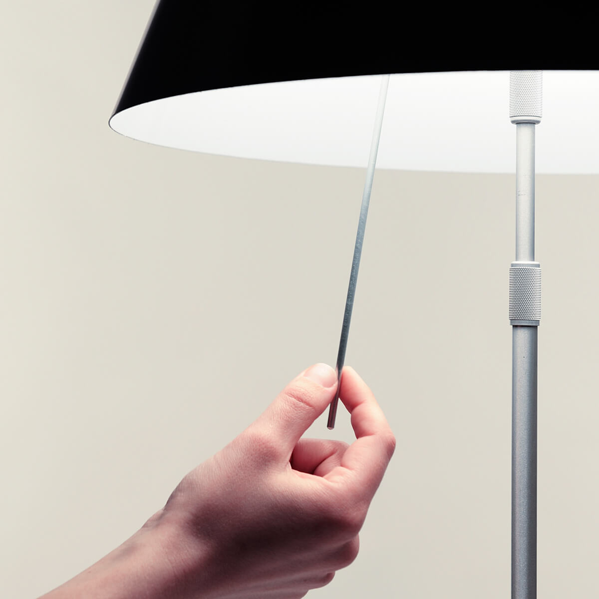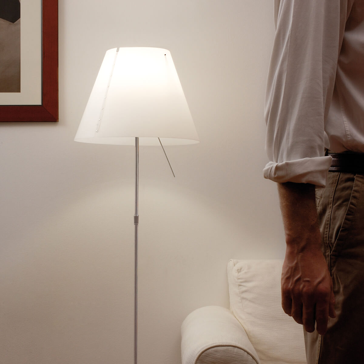 Besondere Funktionalität erhält die Luceplan Costanza Terra Stehleuchte aufgrund ihres höhenverstellbaren Teleskopfußes. Hierdurch kann der Leuchtenschirm auf die stets richtige Höhe gebracht werden. Gilt es etwa die Lektüre zu erhellen, schieben Sie den Leuchtenschirm einfach nach unten. Für ein allgemeineres Licht kann der Schirm wieder nach oben geführt werden.