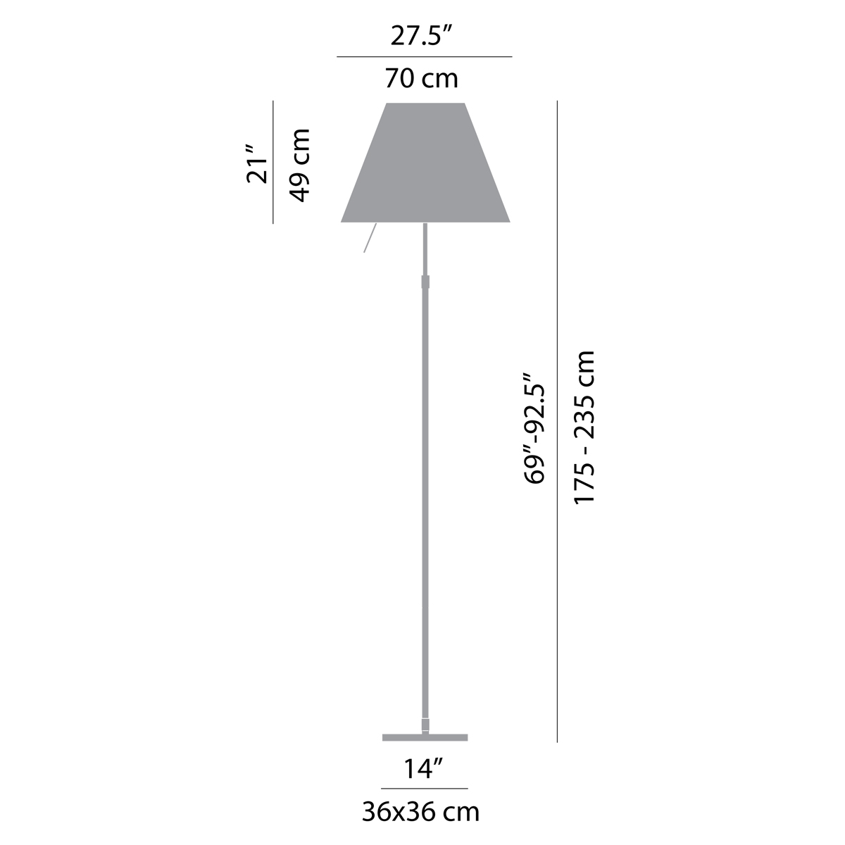 Zwanzig Jahre nach der Kreation der Luceplan Costanza Leuchtenserie entstand die Grande Costanza Terra, eine Stehleuchte, in der die elegante Linie der Vorgängerversionen auf einen völlig neuen Maßstab gebracht wurde. Materialien und Formensprache wurden hierbei beibehalten, die Proportionen der ursprünglichen Stehleuchten jedoch großzügig maximiert.