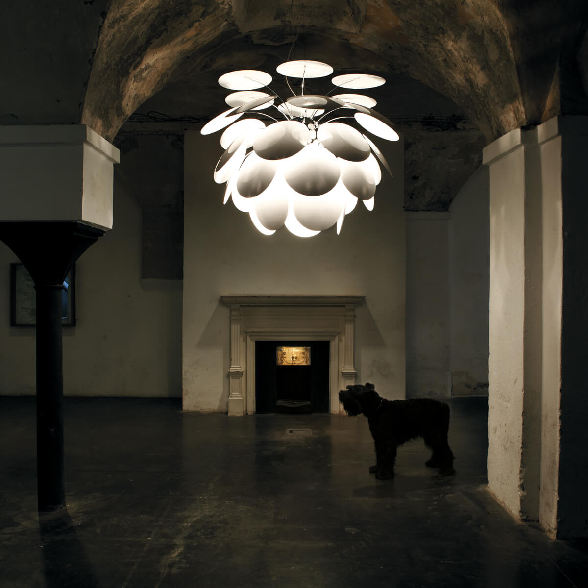 - Leuchtenkorpus aus 35 lichtundurchlässigen ABS-Scheiben