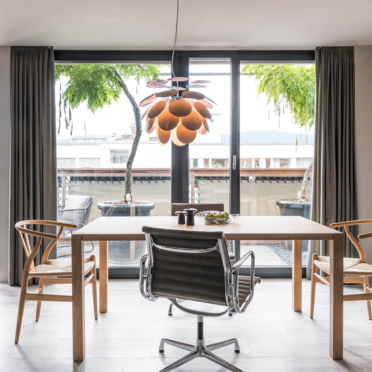 - Begeistert über Tischen und offenen Raumflächen im Privat- und Objektbereich