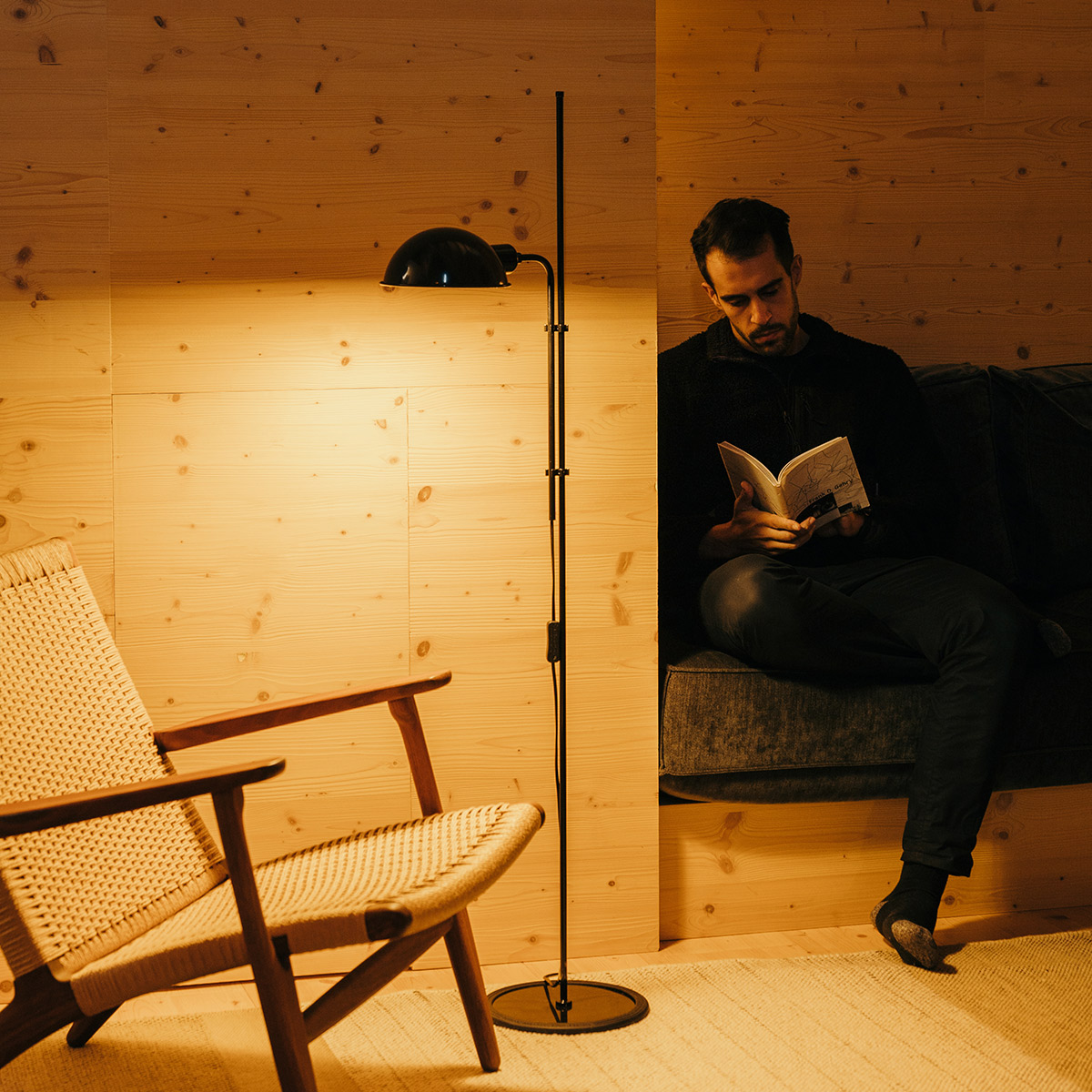 Ein besonderer Vorteil des Produkts: Mit ihrer grazilen Linie beansprucht die Marset Funiculí nur wenig Raum. Zudem kann sie sowohl für die direkte wie auch indirekte Beleuchtung eingesetzt werden – je nachdem, in welche Richtung der Leuchtenschirm ausgerichtet wird. Damit der Lichtkegel um bis zu 360° gedreht werden kann, wurde der Schirm von allem Unnötigen befreit. Als schlichte Kuppel ausgeführt, lässt er sich nach Belieben wenden, um Lektüre oder Arbeitsfläche punktgenau zu beleuchten.
