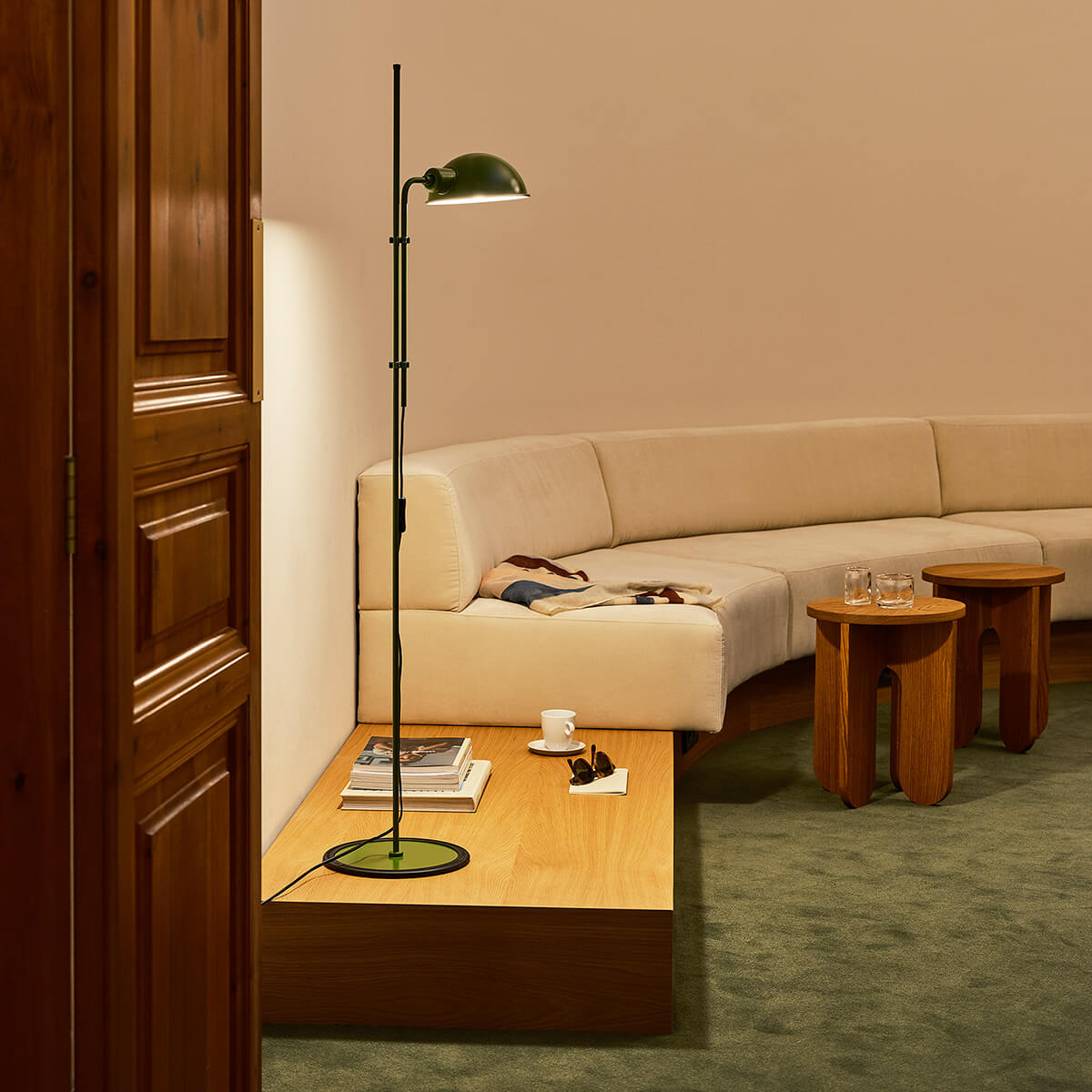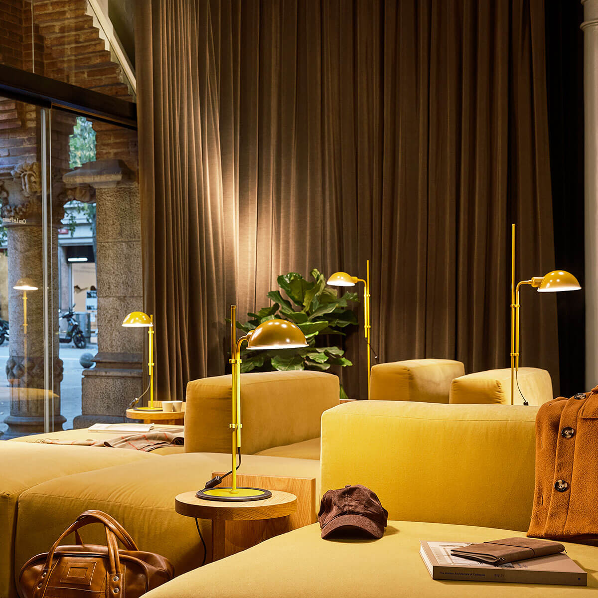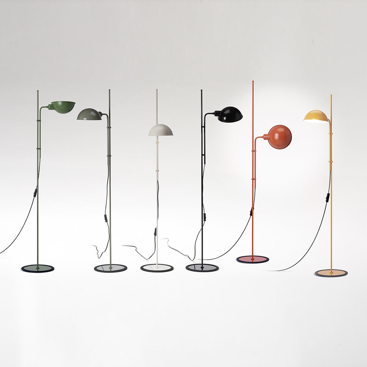 Erhältlich ist die Funiculí Stehlampe in neutralen Farben wie Perlweiß, Schwarz oder Moosgrau sowie – seit 2022 – in drei dynamischen, lebhaften Tönen. Die neue Farbpalette aus Senfgelb, Terrakota und Grün ist intensiv, zeitgemäß und unbeschwert. Sie betont das Design und dessen Formen, während sie gleichzeitig den Raum in eine glanzvolle Atmosphäre taucht.