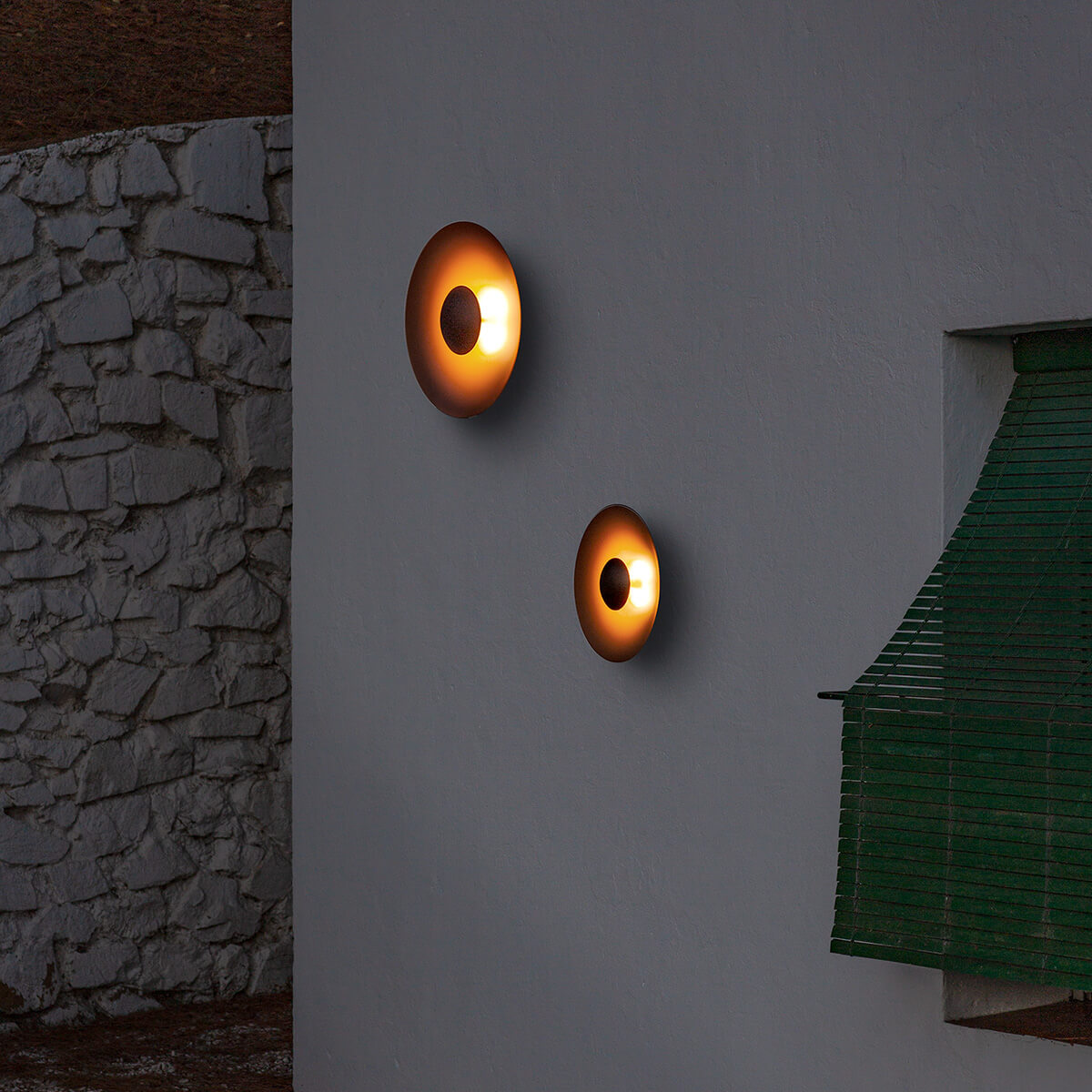 - Runde Außenleuchte zur Akzentbeleuchtung von Fassaden