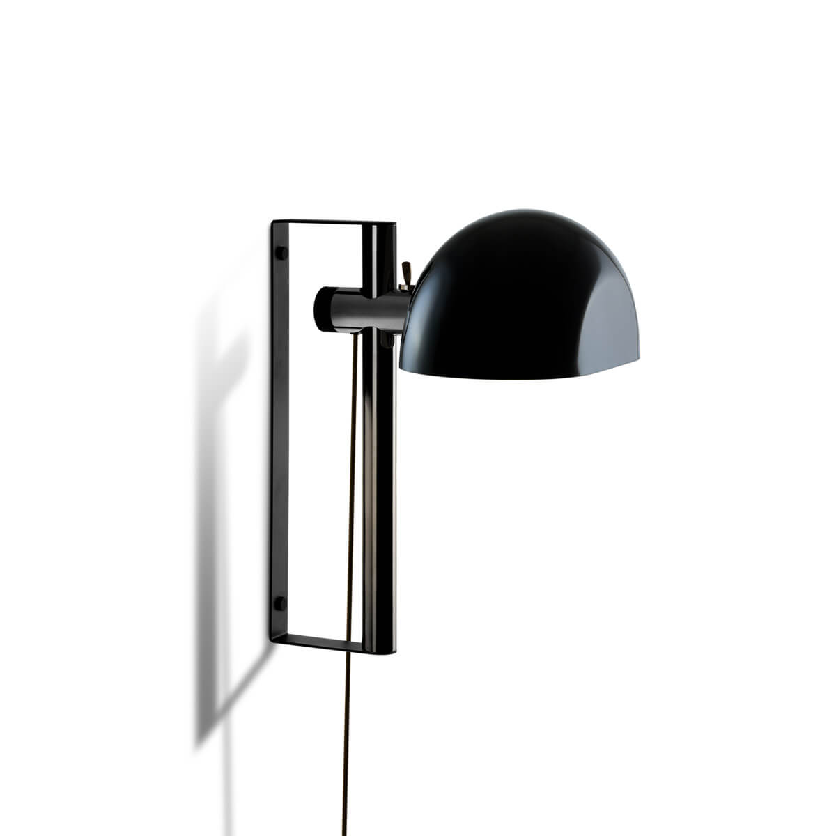 Die Struktur besteht aus Stahl, erhältlich in Chrom oder Dunkelbraun, und spiegelt die industrielle Ästhetik der 1970er-Jahre wider. Damals galt die Verarbeitung von Stahl als technisch anspruchsvoll und innovativ – ein handwerklicher Anspruch, der auch heute noch sichtbar ist. Der halbkugelförmige Schirm ist wahlweise aus opalweißem Methacrylat oder aus doppelschichtigem schwarzem Stahl gefertigt. Während die opale Variante ein weiches, diffus gerichtetes Licht erzeugt, sorgt die schwarze Ausführung für präzises Direktlicht.