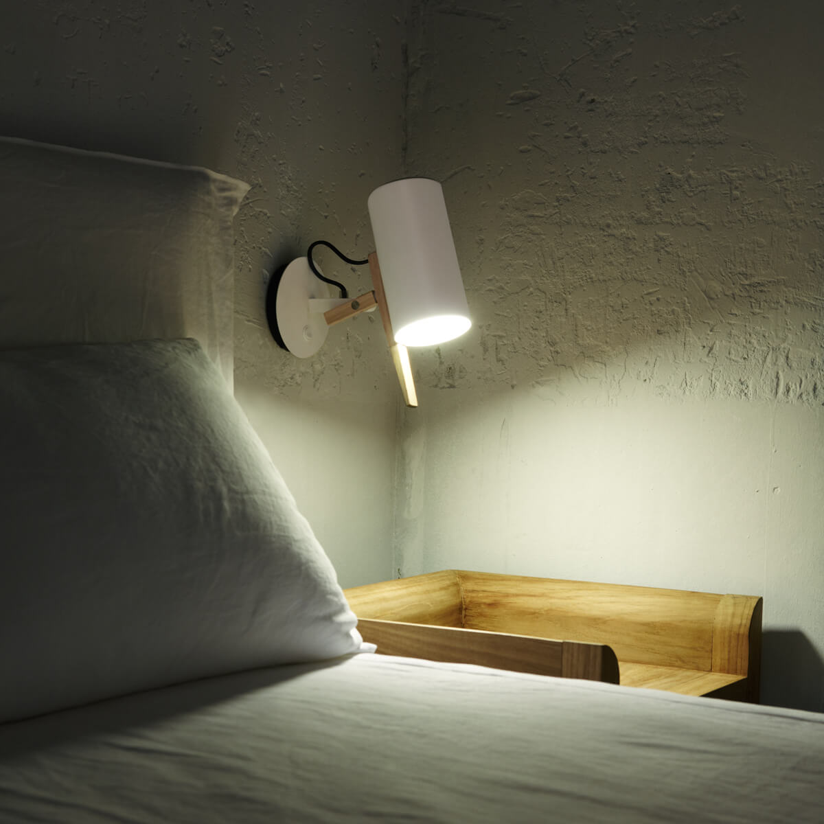 - Funktionale Wandleuchte mit beweglichem Arm aus Eichenholz