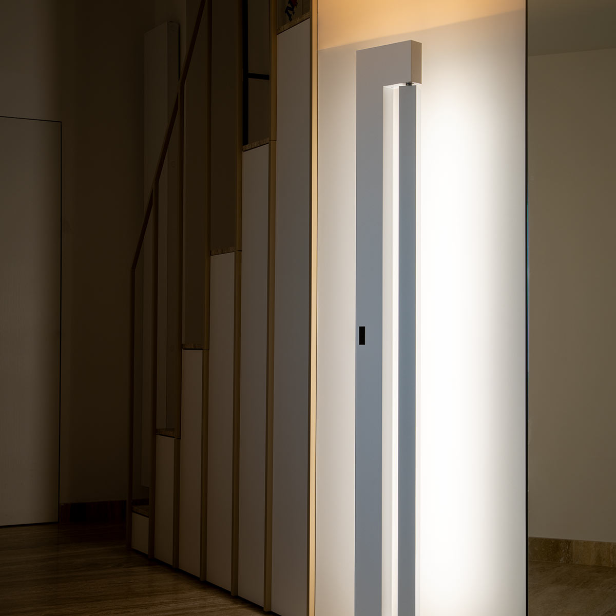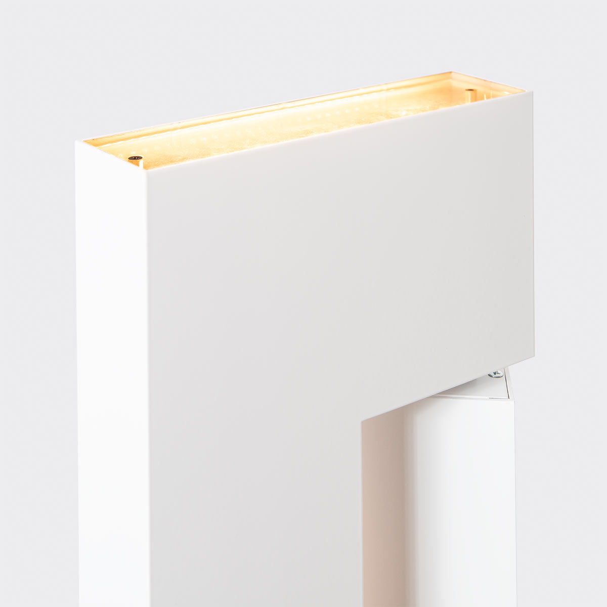 Zusätzlich zum schwenkbaren Drehelement, das eine seitlich ausstrahlende, diffuse Beleuchtung erzeugt, sorgt ein weiteres LED-Leuchtmittel im Kopf der Ara Leuchte für eine nach oben gerichtete, indirekte Lichtausstrahlung. In dieser Kombination aus Deckenfluter und Akzentbeleuchtung eignet sich das Produkt hervorragend zur wohnlichen Grundbeleuchtung.
