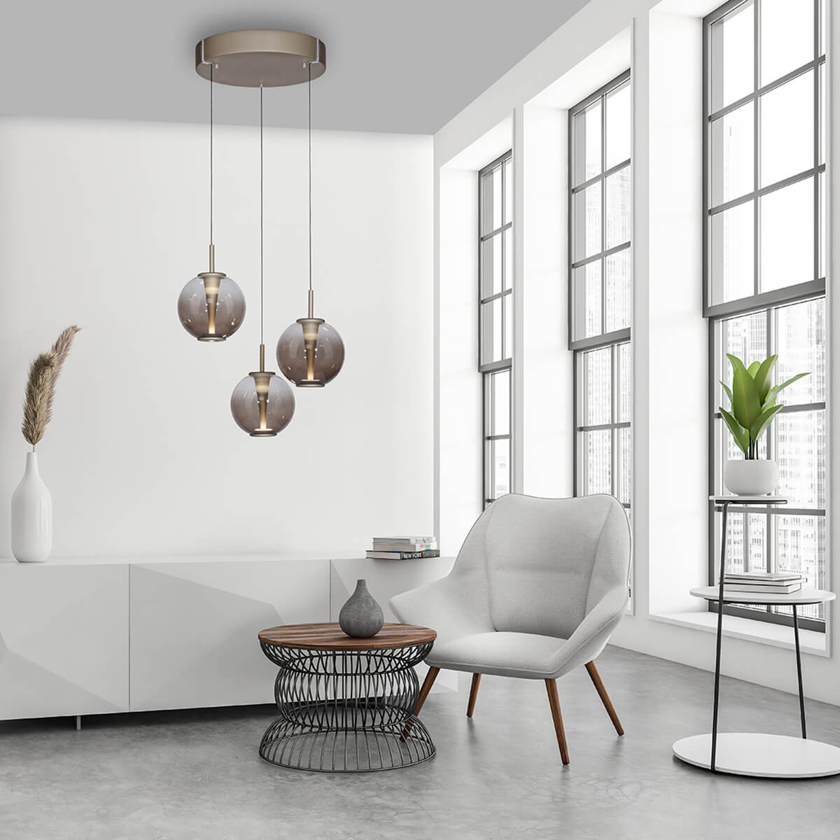 Die PURE E-Infinity LED Pendelleuchte mit e-LIFT® von Neuhaus PURE verbindet modernes Design mit intelligenter Lichtsteuerung und außergewöhnlichem Bedienkomfort. Mit ihrem eleganten Finish in Mystic Grey oder Bronze und den drei kugelförmigen Pendeln aus edlem Rauch- oder Amberglas wird diese Rondell-Pendelleuchte zum stilvollen Mittelpunkt über runden Esstischen, im Wohnbereich oder über einer zentralen Kücheninsel. Die sanft getönten Gläser verleihen dem Licht eine angenehm weiche, wohnliche Wirkung und unterstreichen den hochwertigen Charakter dieser Designerleuchte.