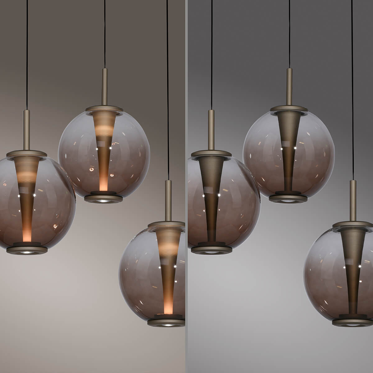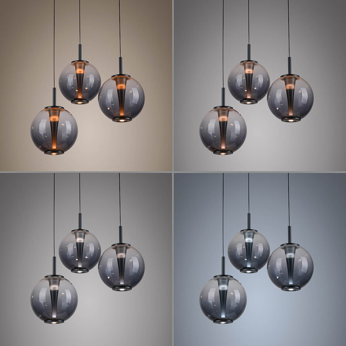- 3 Kugelförmige Pendel mit Rauchglas oder Amberglas