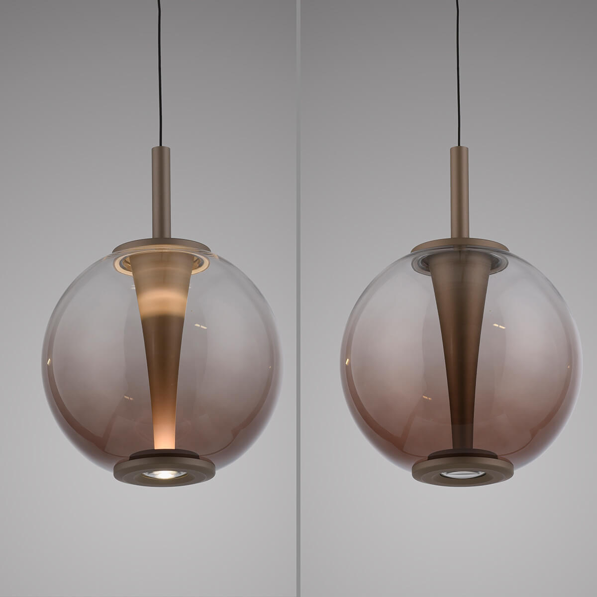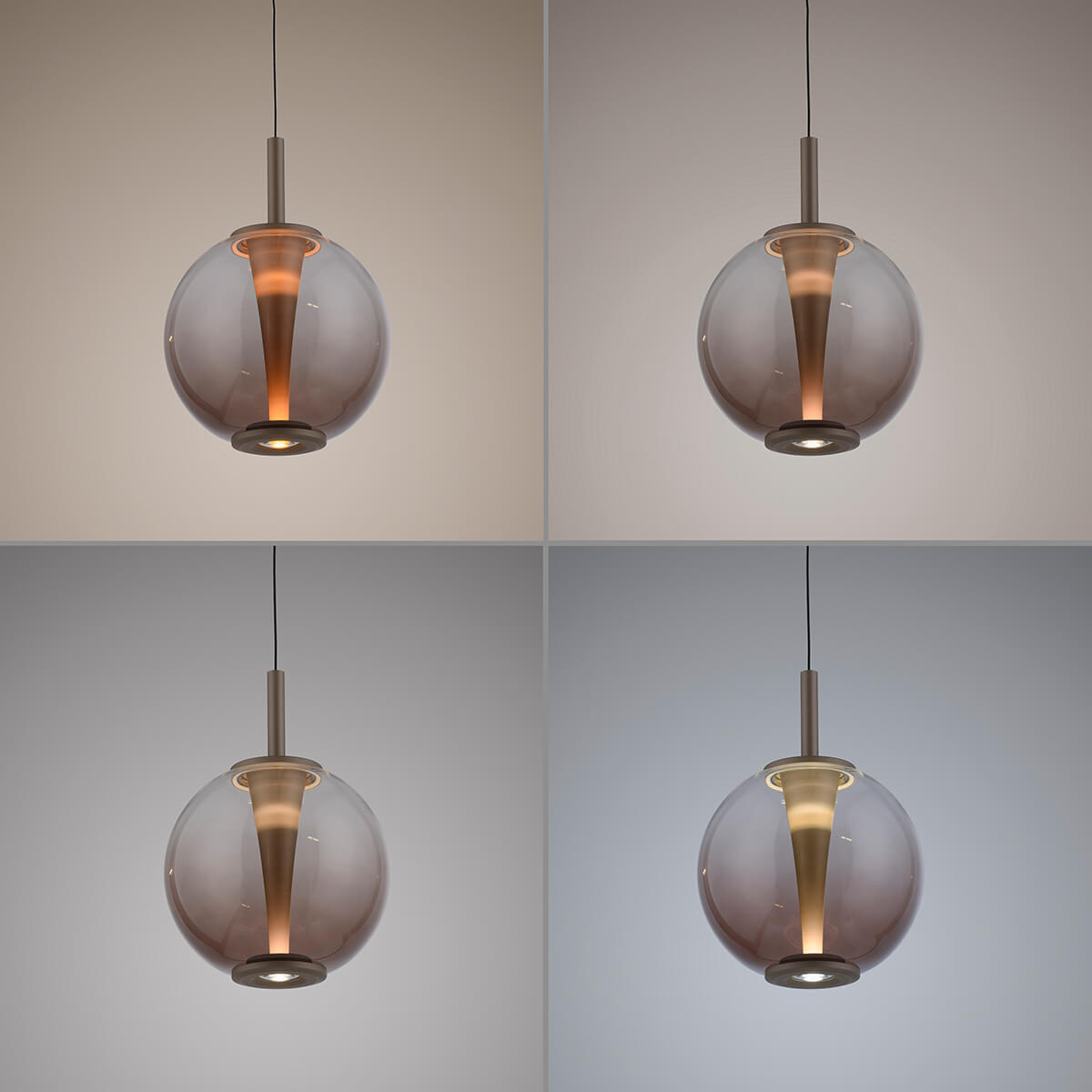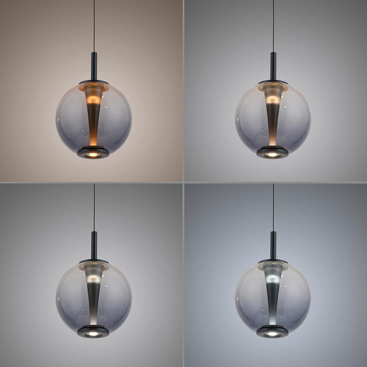 Das fein getönte Rauchglas sorgt für eine angenehm weiche Lichtwirkung und unterstreicht den wohnlichen Charakter dieser Designer-Pendelleuchte. Gleichzeitig überzeugt die PURE Infinity durch ihre innovative LED-Technologie: Über die mitgelieferte Funk-Fernbedienung steuern Sie die Lichtfarbe stufenlos zwischen warmweißem 2.200 Kelvin und tageslichtähnlichen 5.000 Kelvin. Ob gemütliches Dinner, entspannter Abend im Wohnzimmer oder konzentriertes Arbeiten – Sie schaffen jederzeit die passende Lichtstimmung.