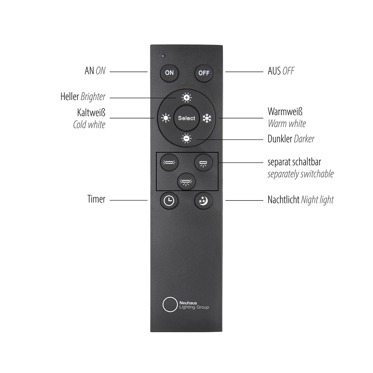 | Lichtsteuerung: | dimmbar via Fernbedienung |