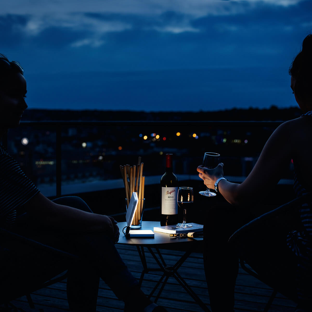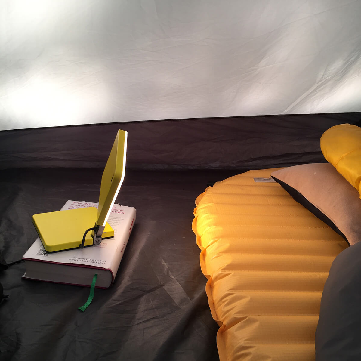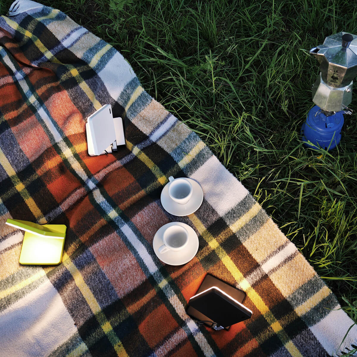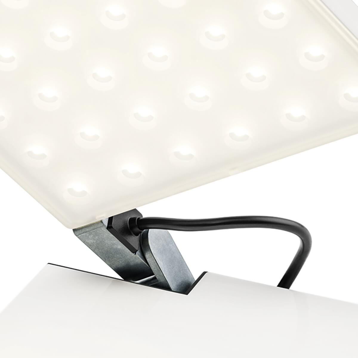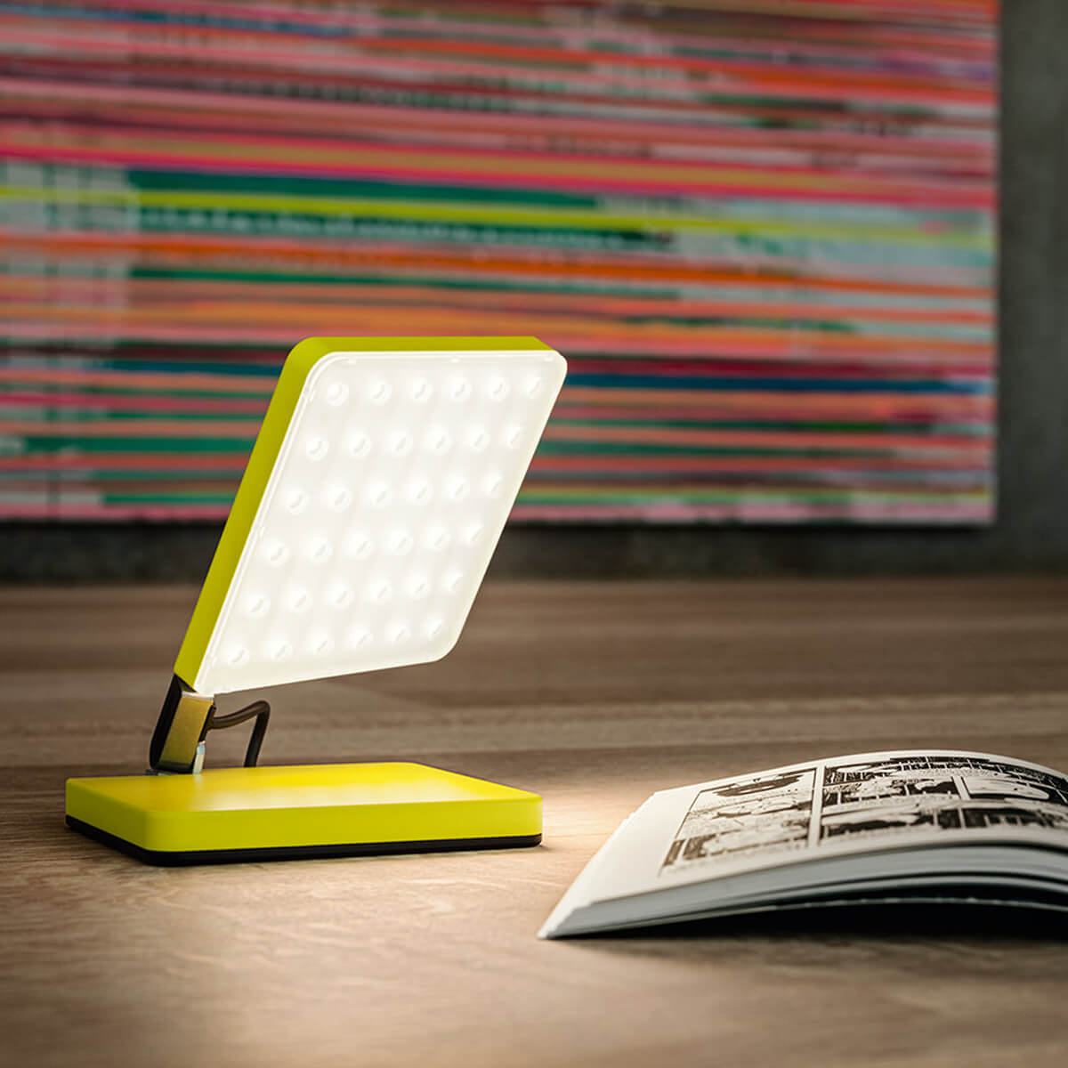 Ein Spotlight-Diffusor aus Polycarbonat sorgt für eine homogene, blendfreie Ausleuchtung. Mit rund 400 Lumen liefert die kleine Akku-Tischleuchte ein komfortables Leselicht in einem warmweißen Ton von 2.700 Kelvin – perfekt für entspannte Abendstunden.