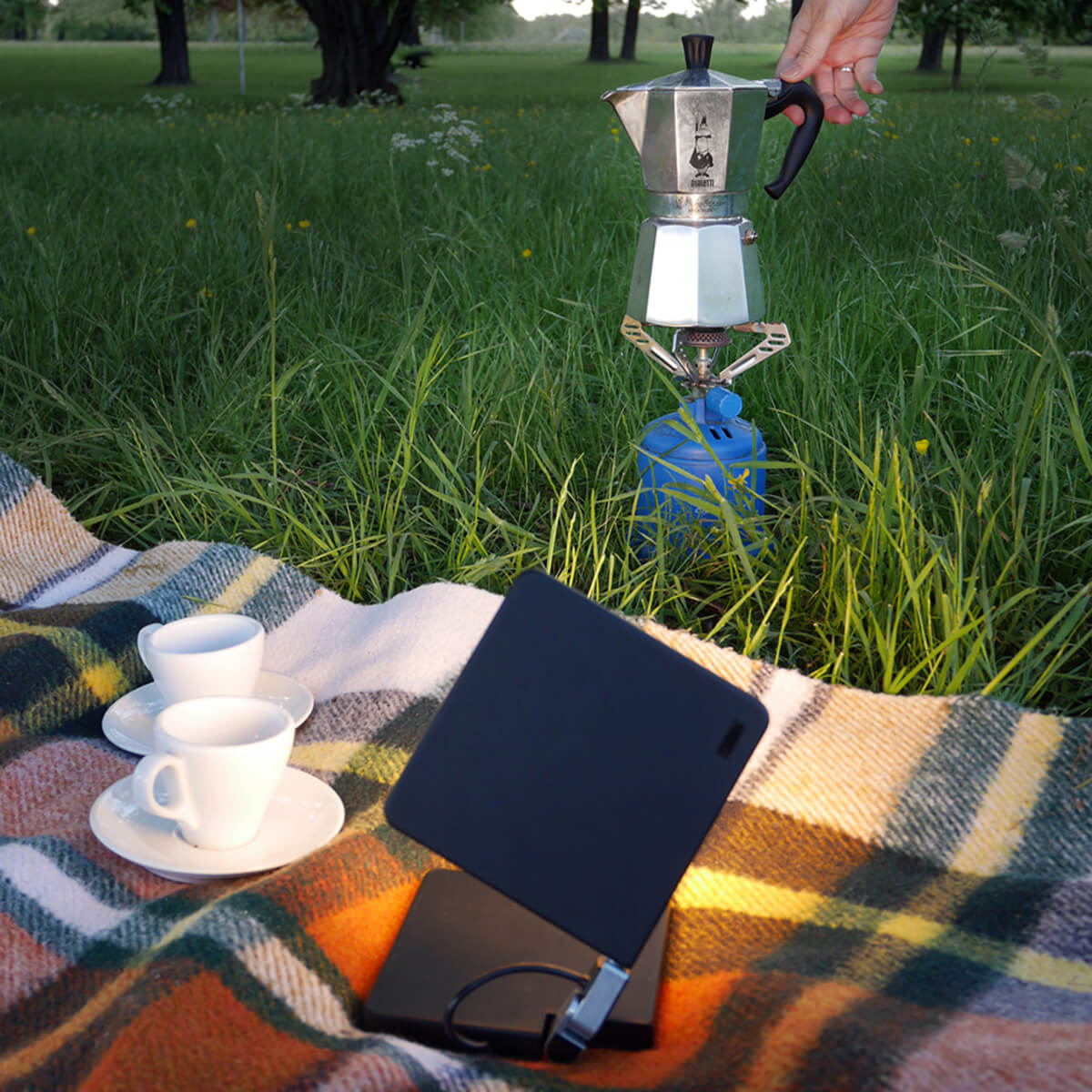 Das Aufladen erfolgt über das beiliegende Micro-USB-Kabel. Die Schnittstelle befindet sich im Sockel der Leuchte. Einmal verbunden, wird die Energie bequem über Laptop, Powerbank oder das als Zubehör erhältliche USB-Netzteil bereitgestellt.