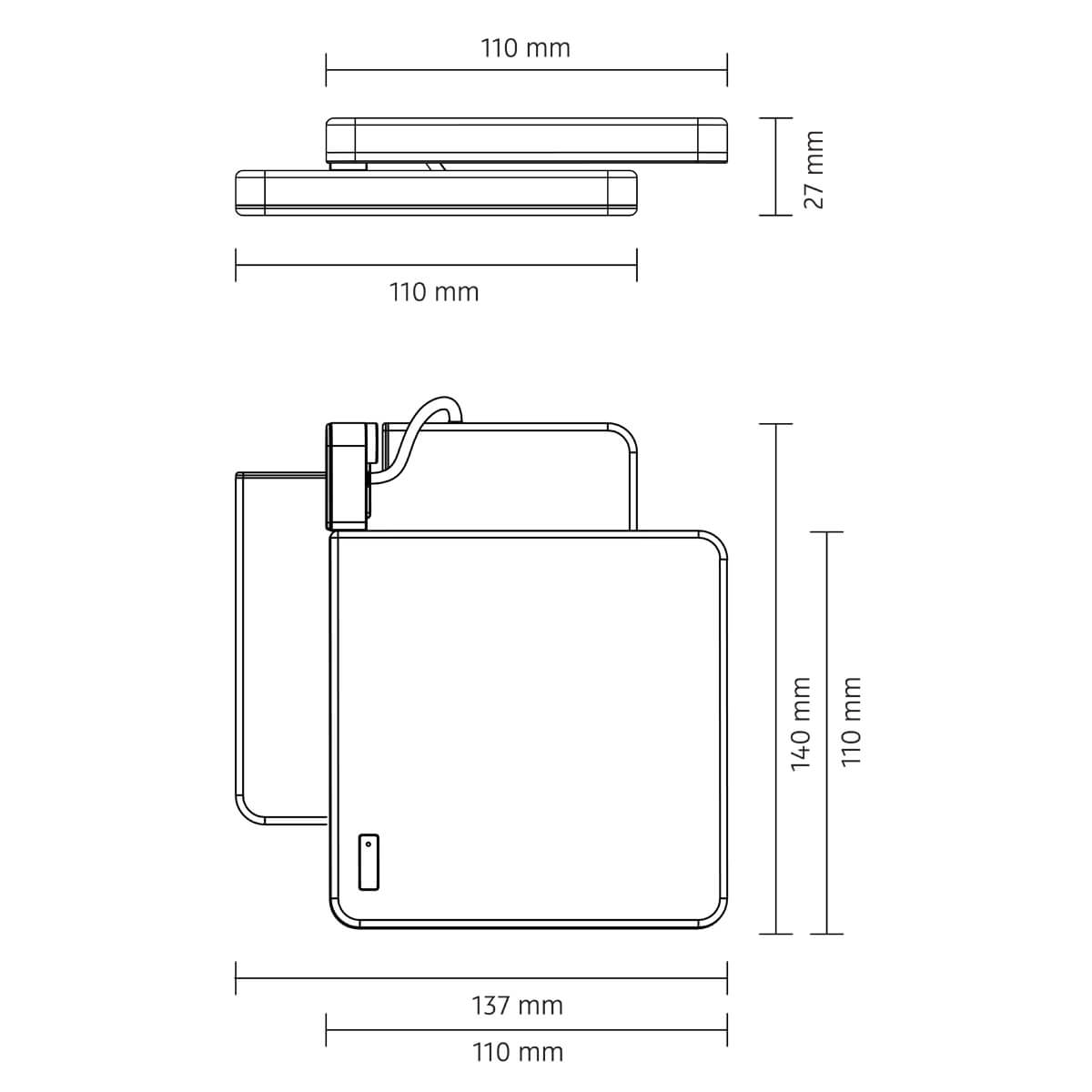 | Sonstige Maße: | Leuchte gefaltet: 13,7 x 14 x 2,7 cm |