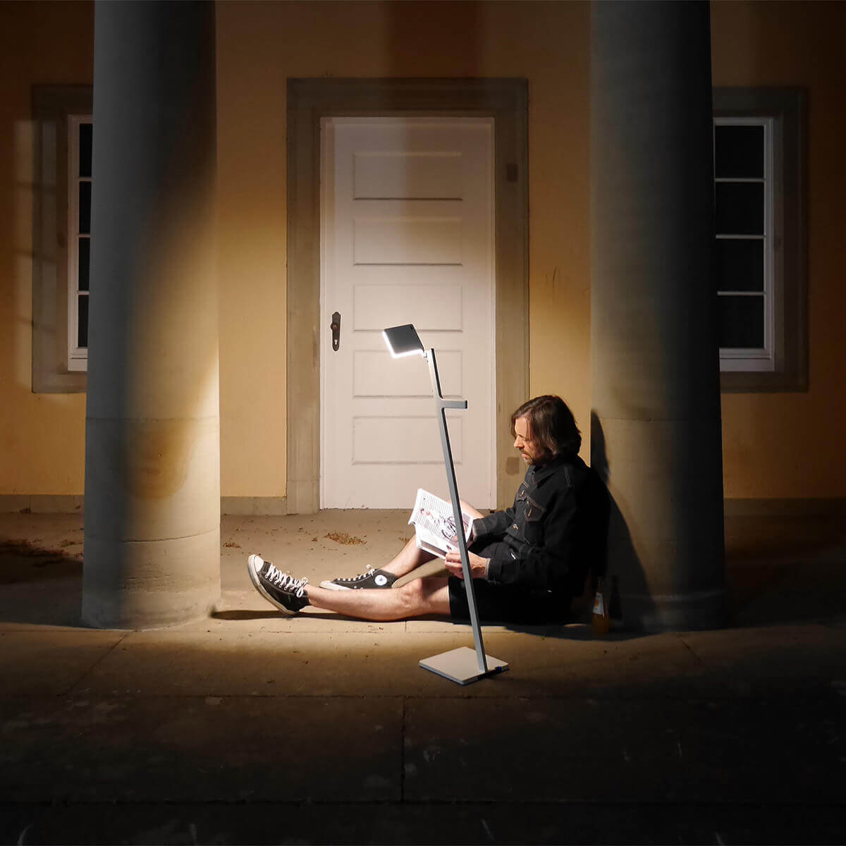 - Akkubetriebene, tragbare Stehlampe mit verstellbarem Leuchtenkopf