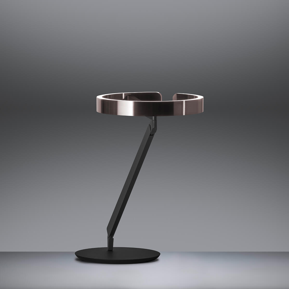 Als besonderes Feature verfügt die Schreibtischleuchte über die Funktion "focus light". Einmal aktiviert, ermöglicht sie ein fokussiertes, nach unten gerichtetes Licht bei reduzierter Lichtleistung von 9 Watt – ideal für ein konzentriertes Arbeiten und Lesen. Zwischen normaler Lichtwirkung und Focus light hin- und hergeschaltet werden kann über einen Sensor an der Oberseite der Gabel des Gioia heads. Auch die Einstellung via Occhio air ist möglich.
