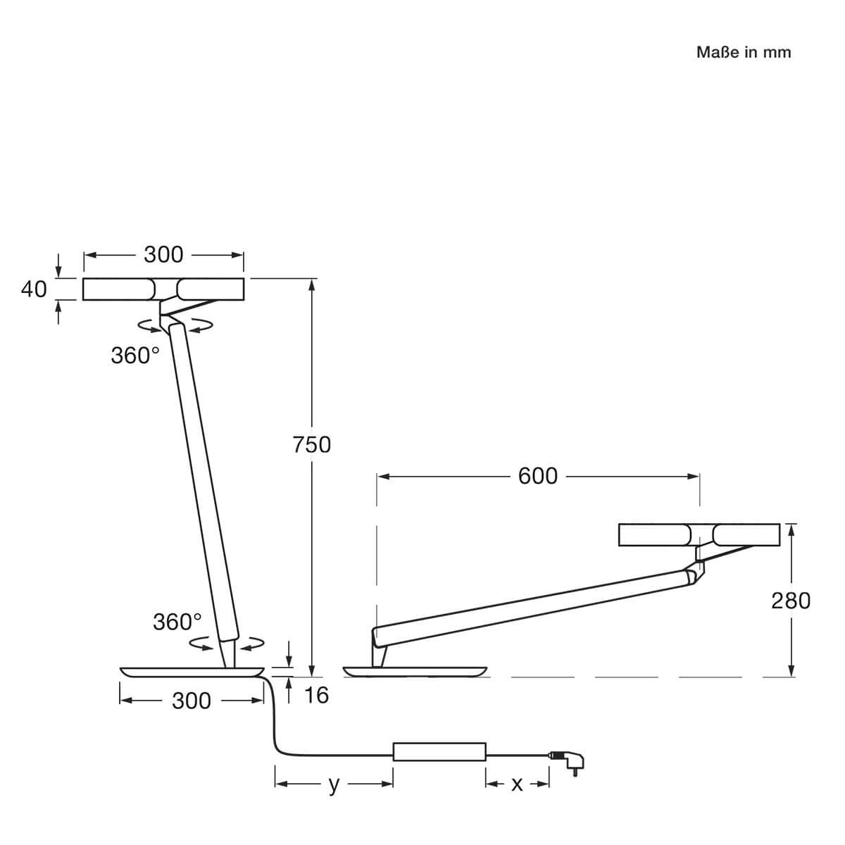 Dank geschickt eingesetzter Gelenke und Steckkontakte ist die Tischlampe ein echter Bewegungskünstler ("infinite movability"). Der Leuchtenarm ist ohne Anschlag um bis zu 360° drehbar und kann zusätzlich nach oben und unten geschwenkt werden. Der ringförmige Gioa head sitzt dem Arm gleichsam schwerelos auf und lässt sich ebenfalls um 360° frei bewegen. Hierbei bleibt der Kopf in jeder Position absolut waagerecht – selbst wenn Sie die Leuchte auf die maximale Ausladung von 60 cm bringen.